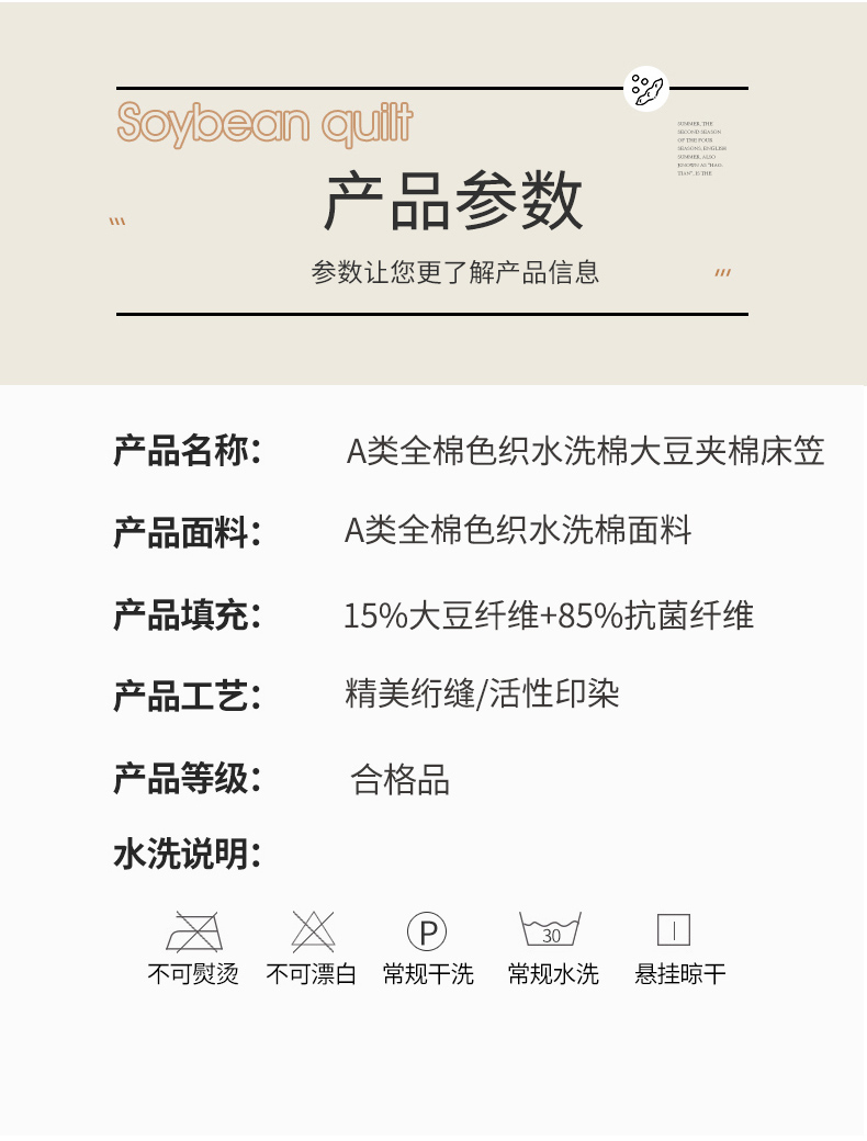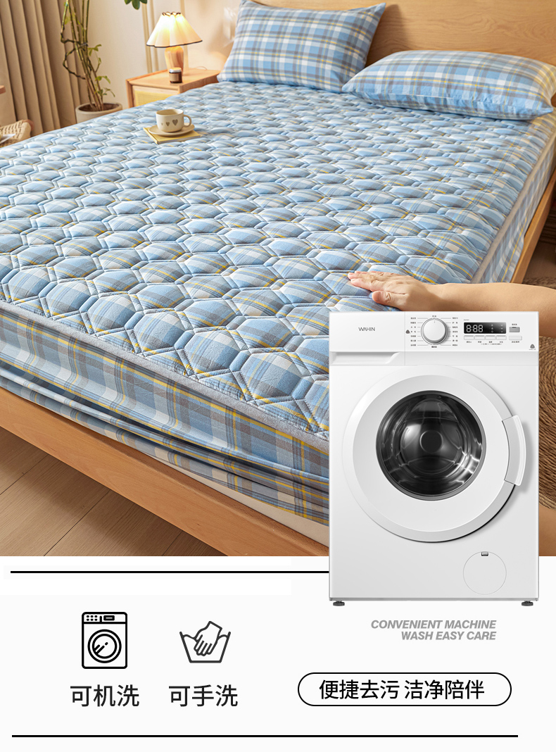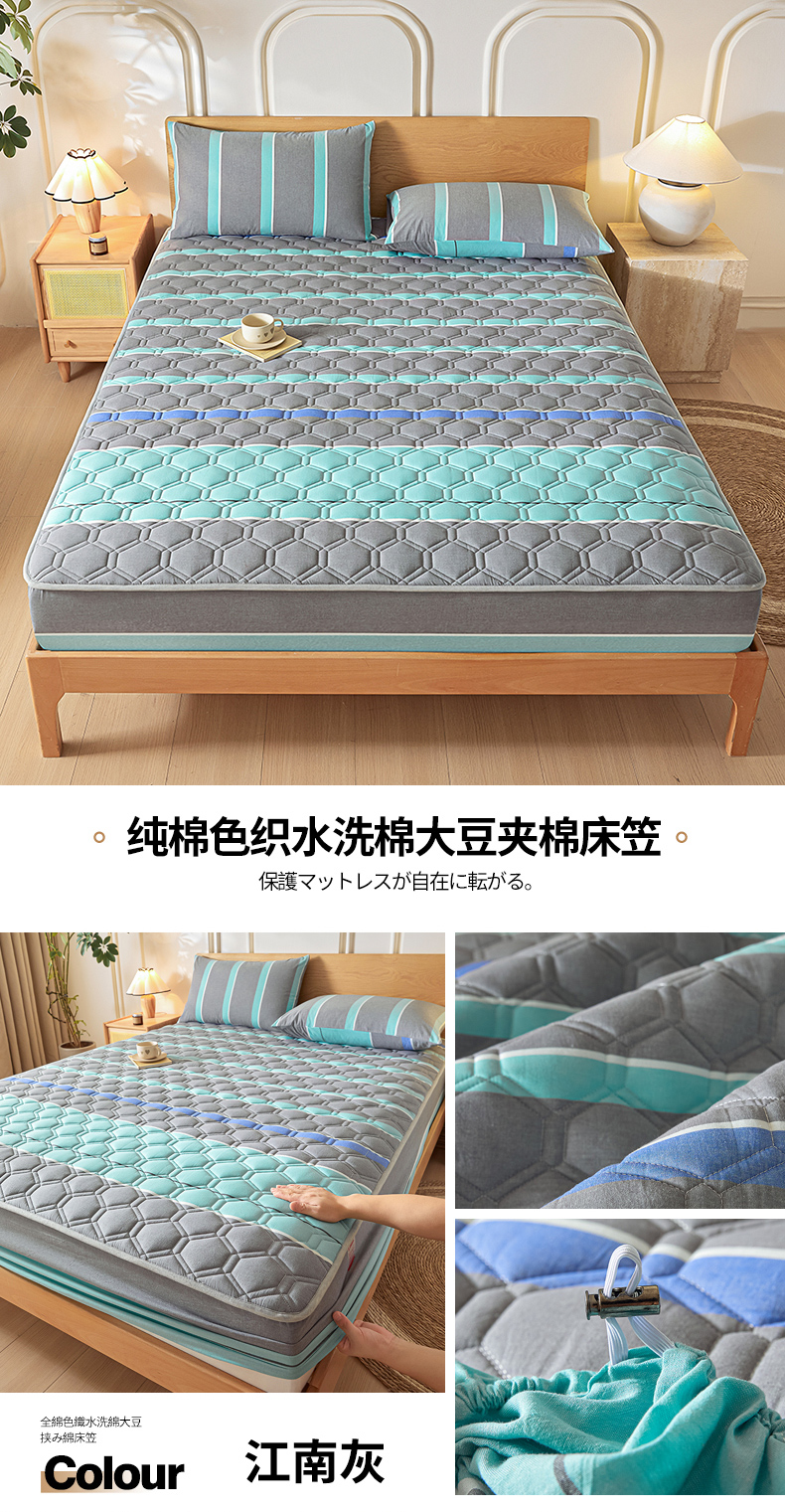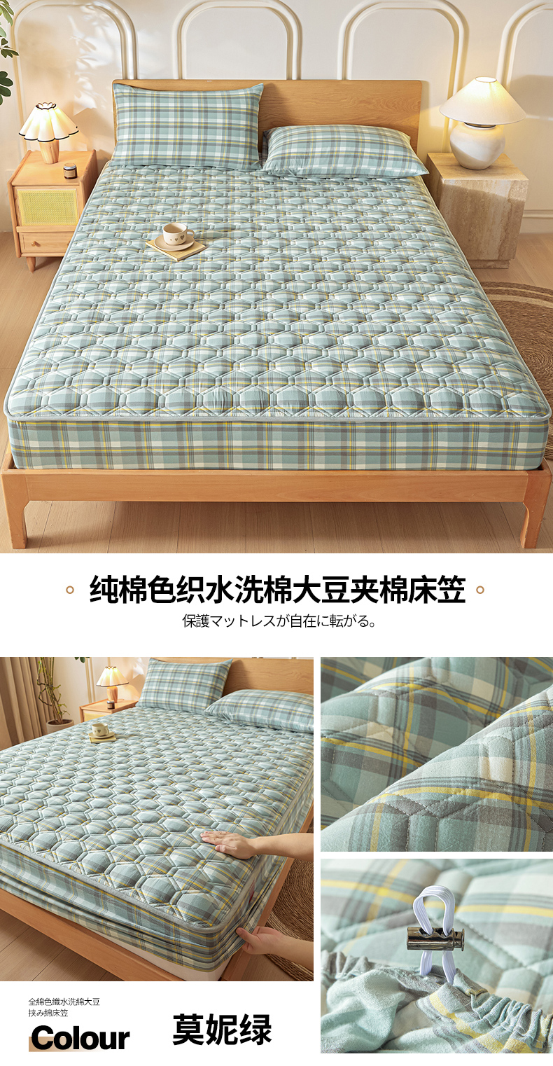 商品名称:(总)雪云美2025新款A类全棉色织水洗棉夹棉床笠大豆床罩床垫保护套可定制