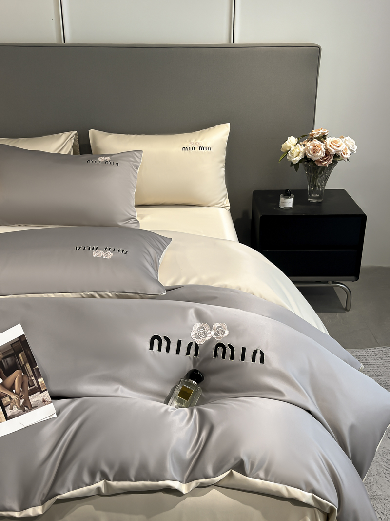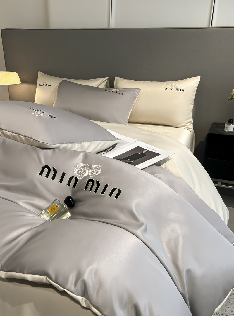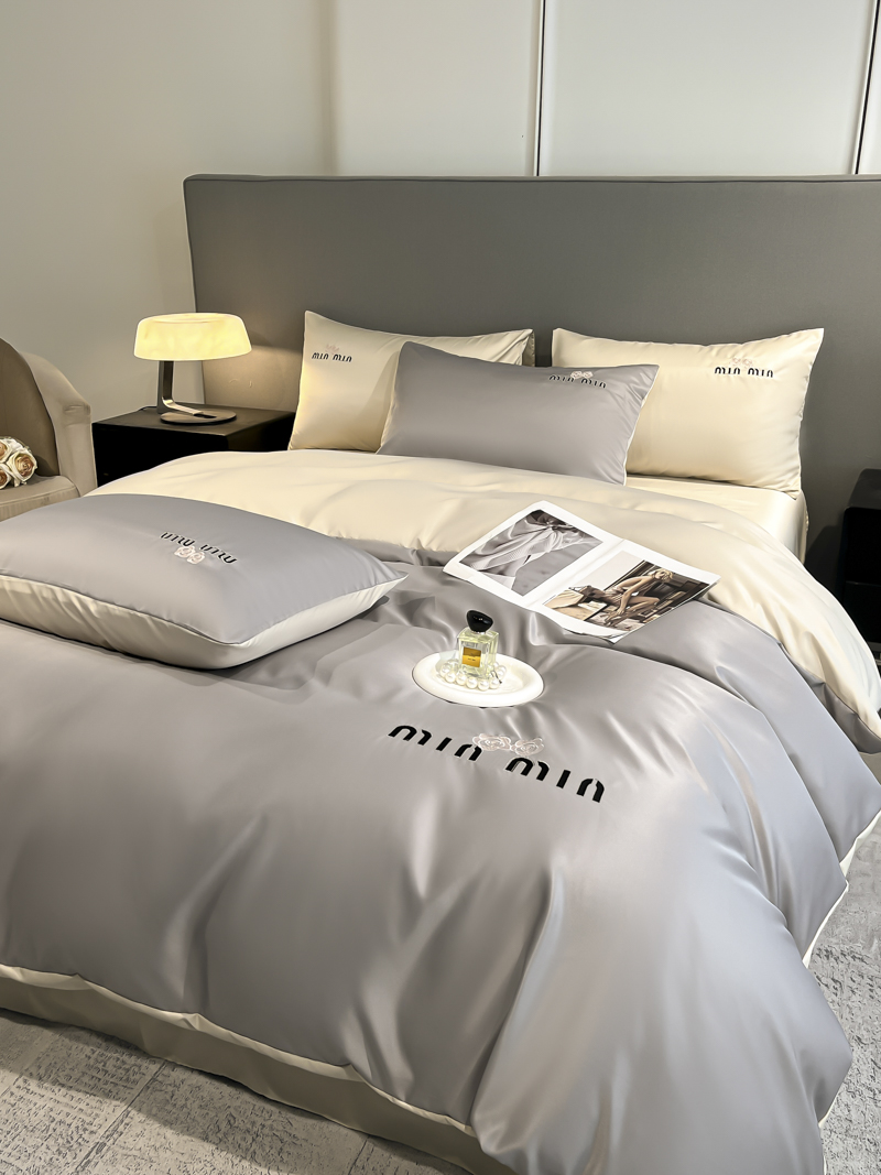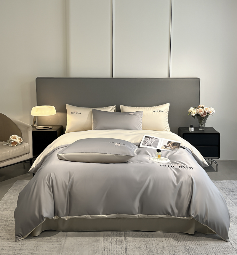 商品名称:大麦乐田 2025新品珍珠棉达芙刺绣四件套 达芙绅士灰+奶茶