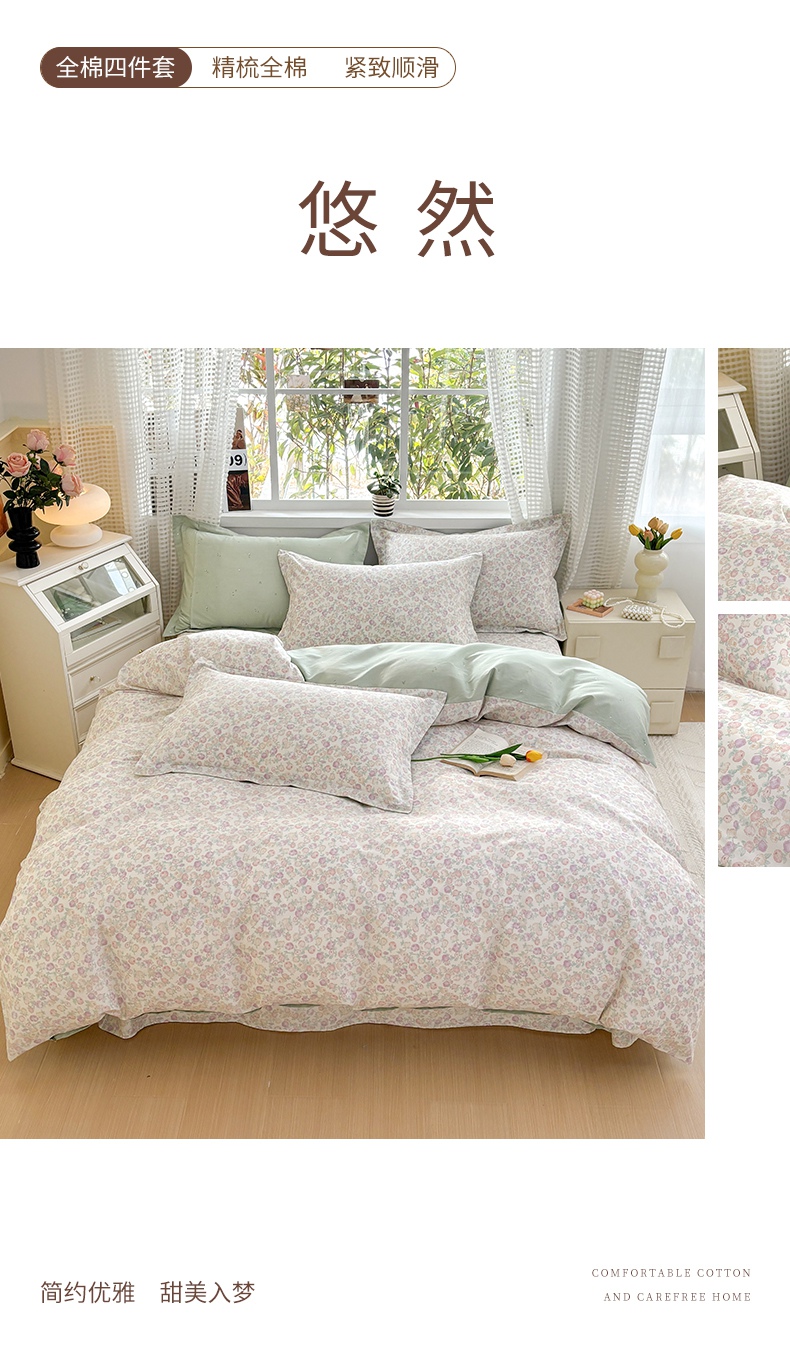 当前位置: 91家纺网 > 商品网购 > 床品套件 > 四件套 > 全棉普通四件套 > 元元被芯 2025新款40支13372全棉印花全棉四件套 半夏