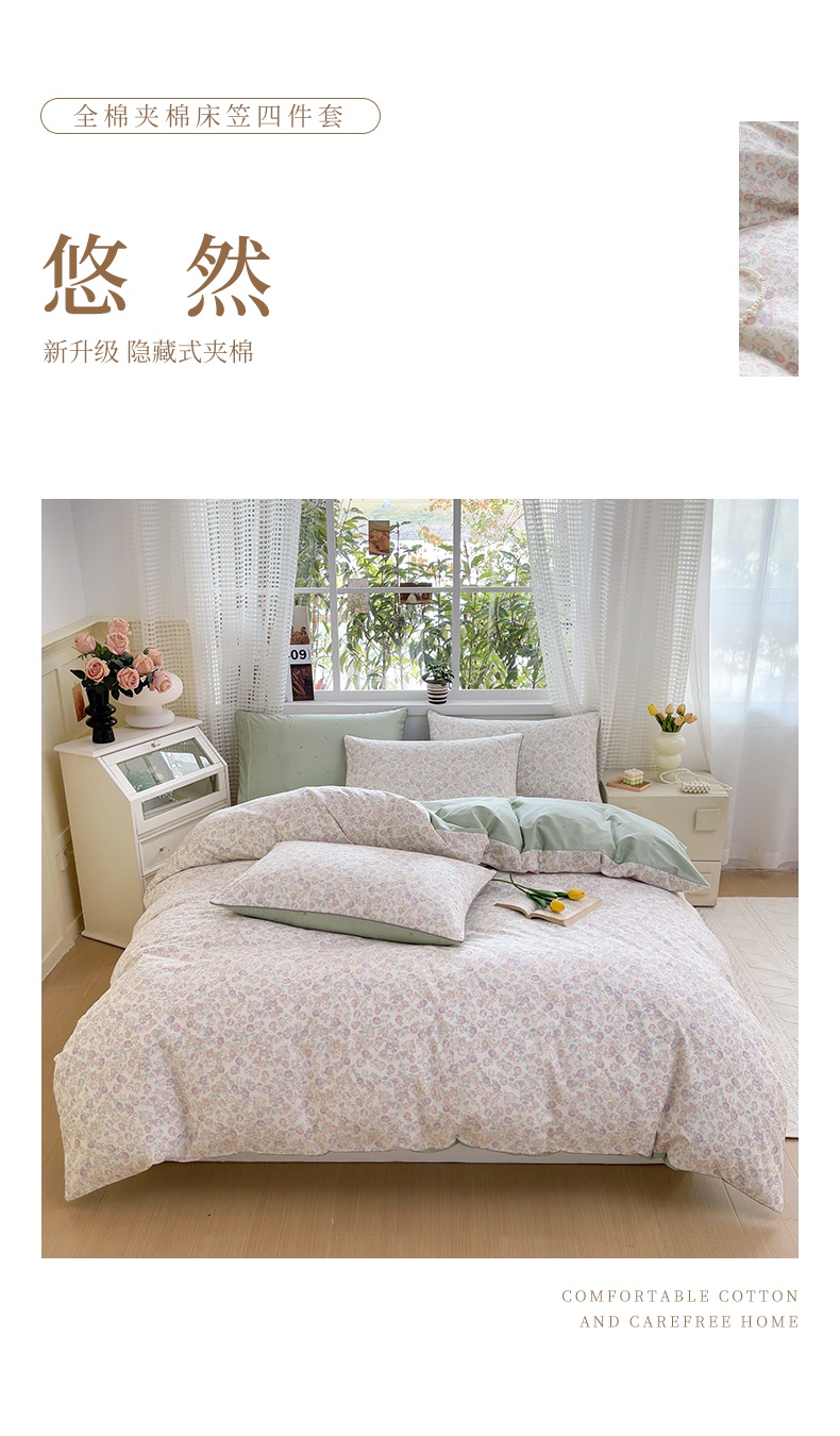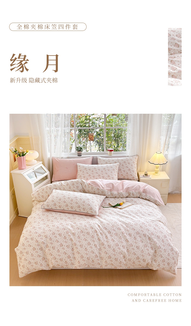 当前位置: 91家纺网 > 商品网购 > 床品套件 > 四件套 > 全棉普通四件套 > 元元被芯 2025新款40支13372全棉印花全棉夹棉床笠四件套 初妤
