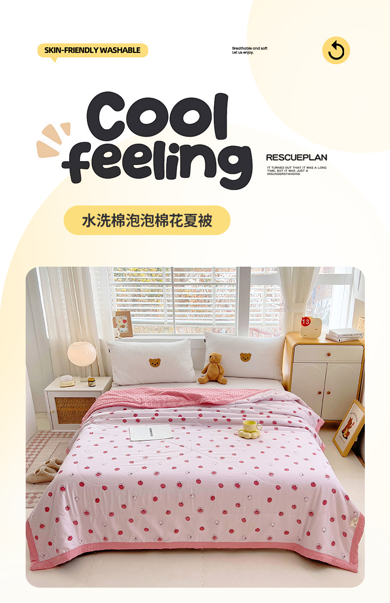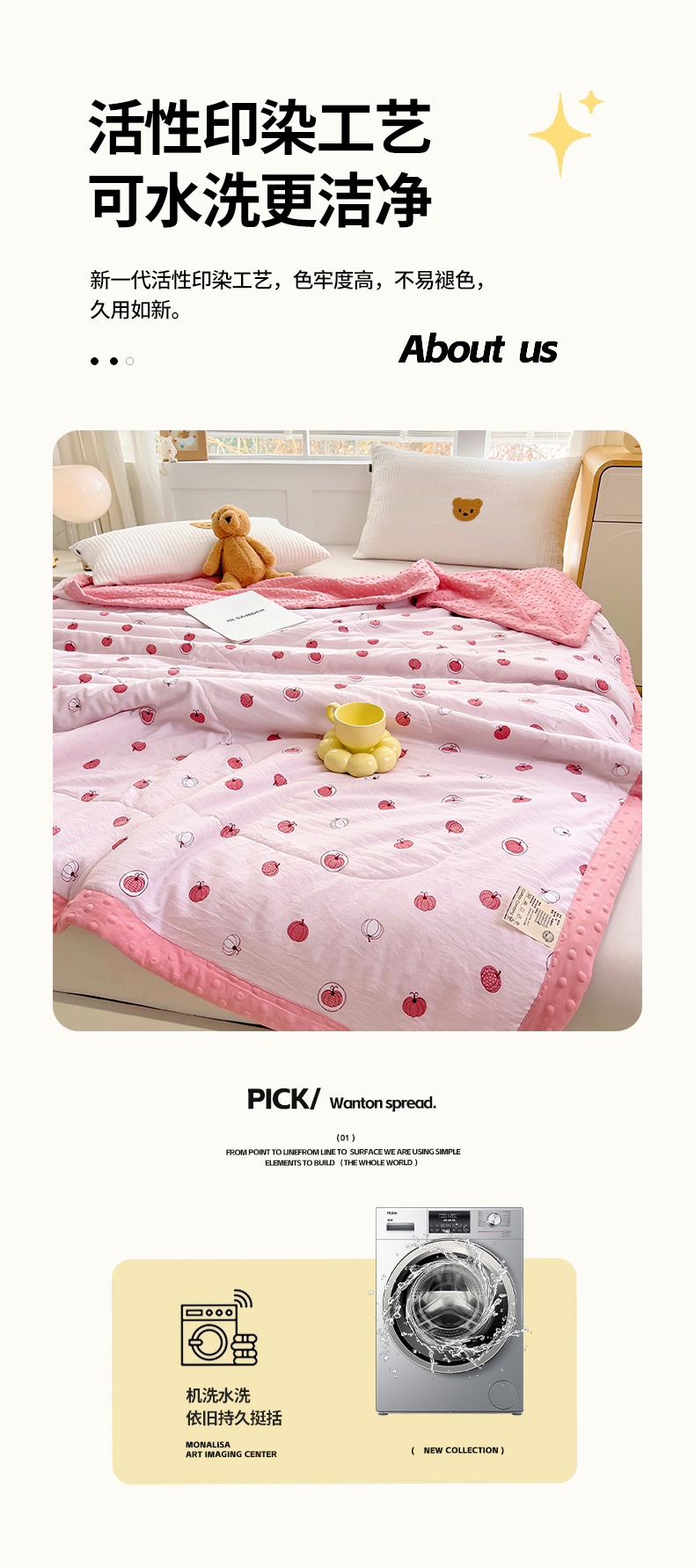 鑫棉坊 2024新款A类烫画款全棉色织水洗棉棉花夏被 叠拍主图,叠拍主图