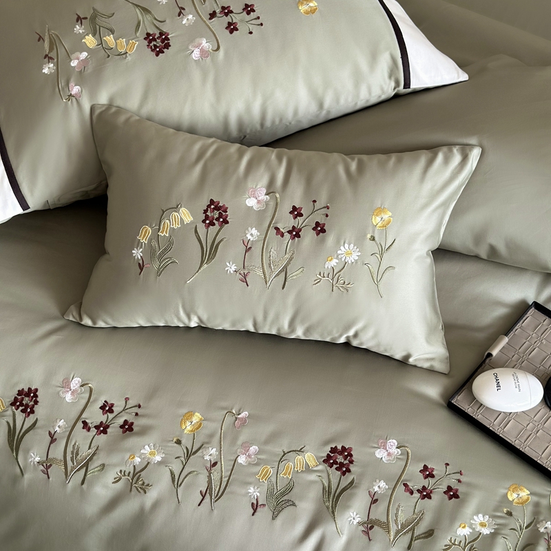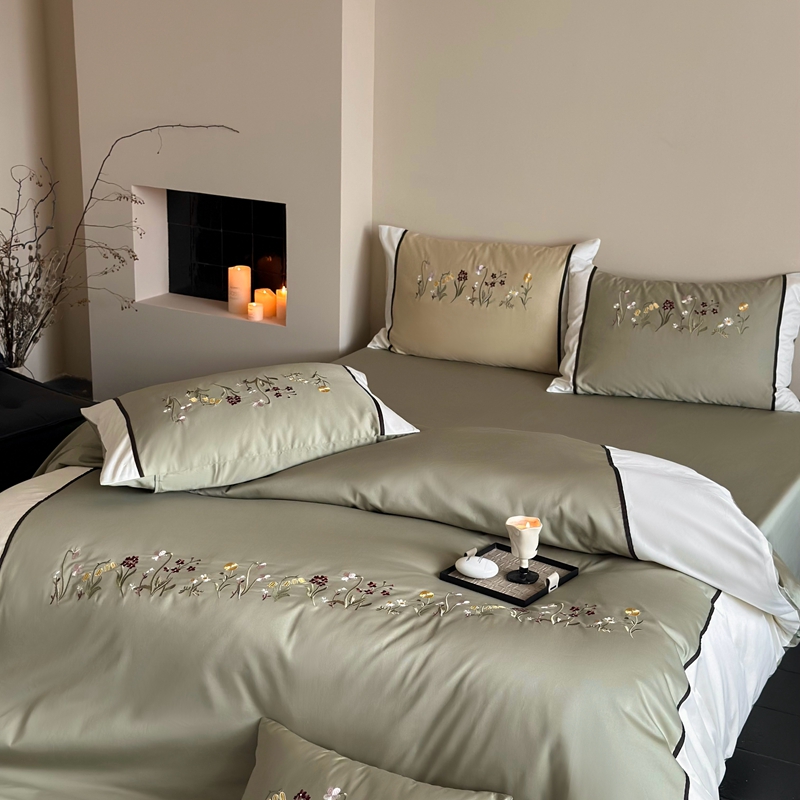 鹿班家居 2025春夏款100S长绒棉刺绣四件套-山花秋色【标准会员-20元】 山花秋色-绿色