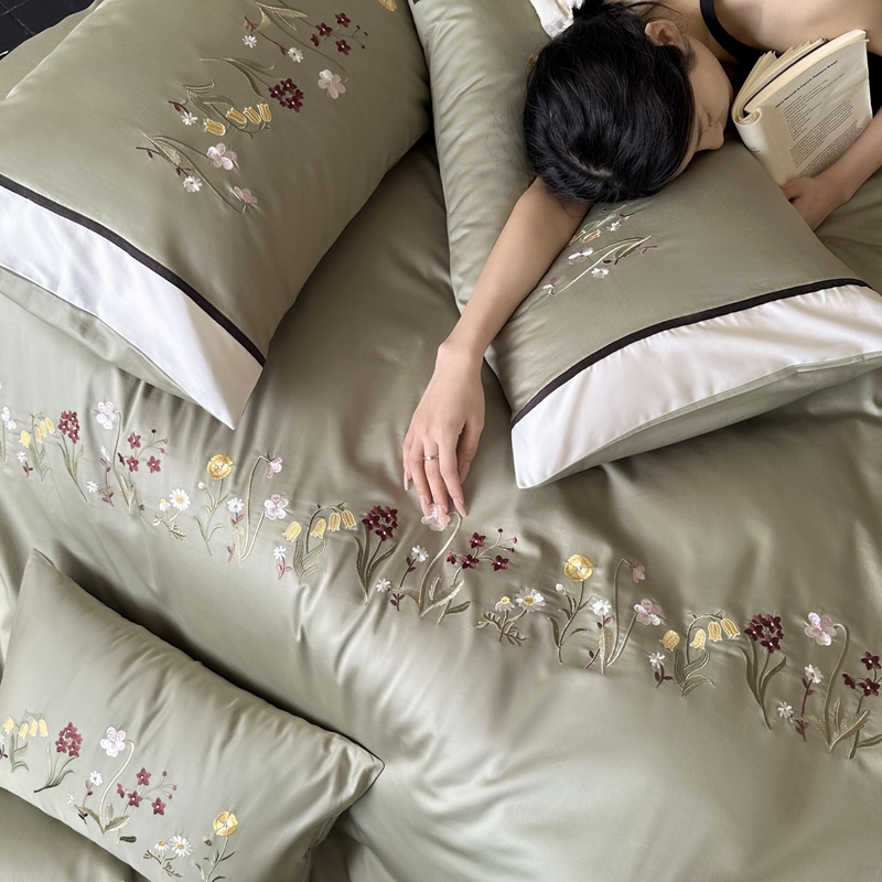 商品名称: 鹿班家居 2025春夏款100S长绒棉刺绣四件套-山花秋色【标准会员-20元】 山花秋色-绿色
