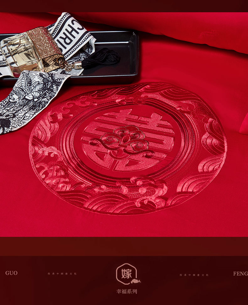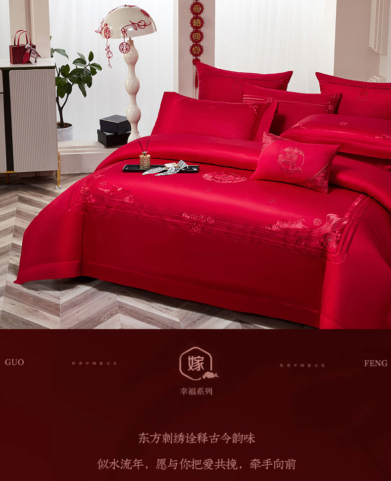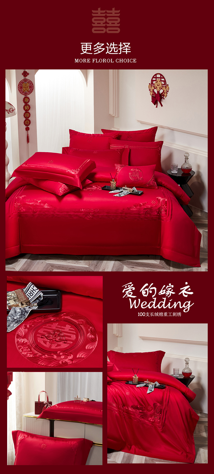 当前位置: 91家纺网 > 商品网购 > 床品套件 > 四件套 > 婚庆四件套 > 蒂爵2025新款婚庆四件套A版长绒棉绣花 B版100长绒棉(加大+20元) 爱的嫁衣