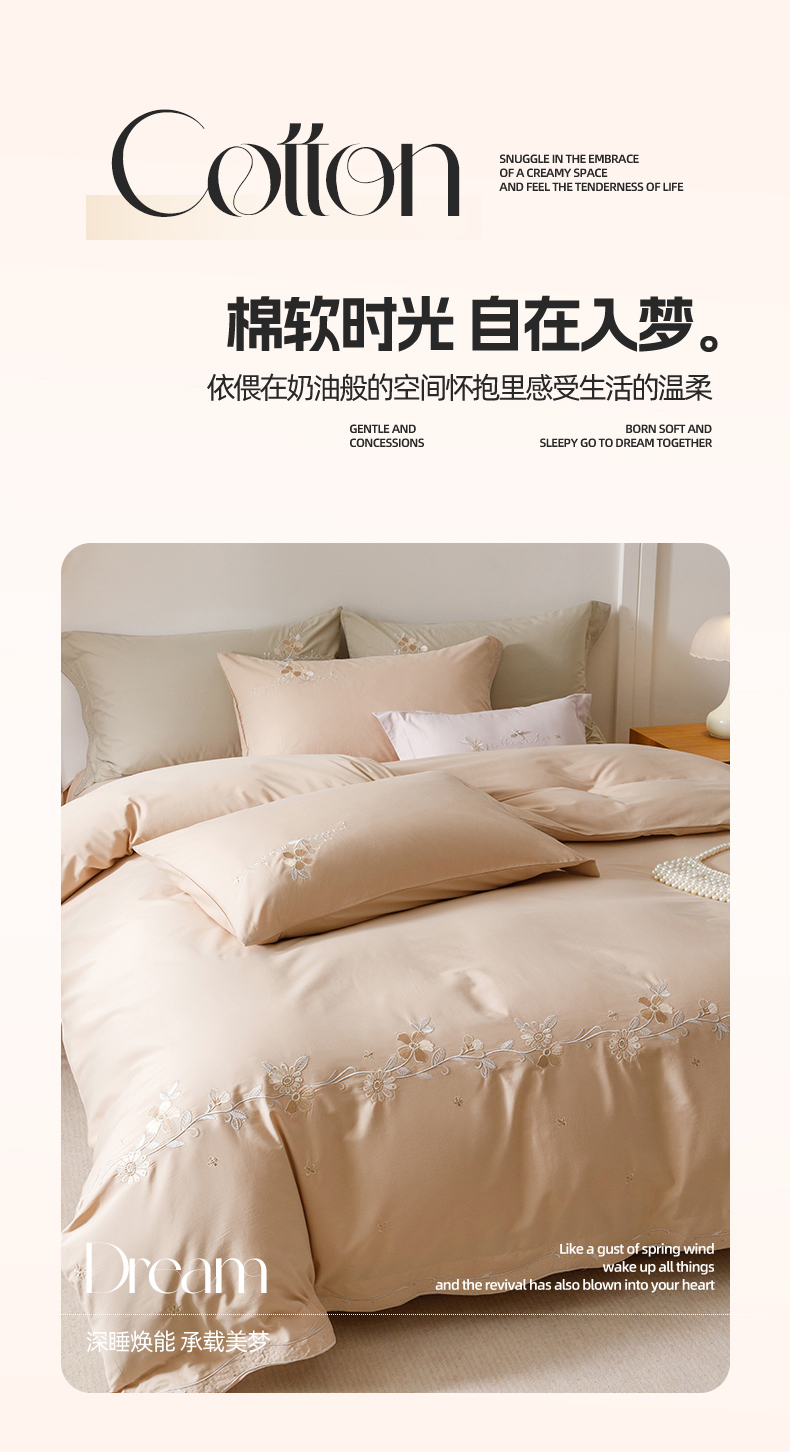 (总)艾莱家纺 2025新款A类精梳贴布纯棉刺绣花四件套-星澜,星澜-春绿,星澜-美拉德,星澜-蜜糖粉,星澜-松露咖,星澜-小米,星澜-烟云灰