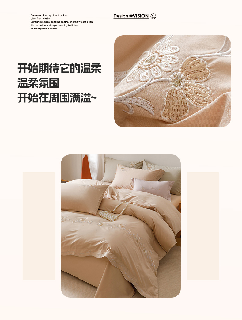 (总)艾莱家纺 2025新款A类精梳纯棉刺绣花四件套-赫柏,赫柏-橙夕,赫柏-花田米,赫柏-浅粉,赫柏-夜绿