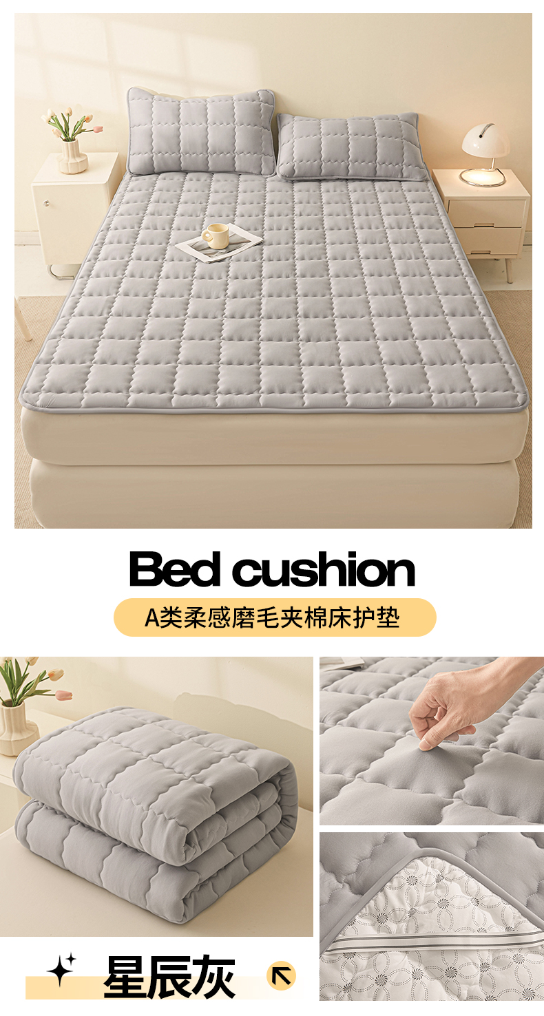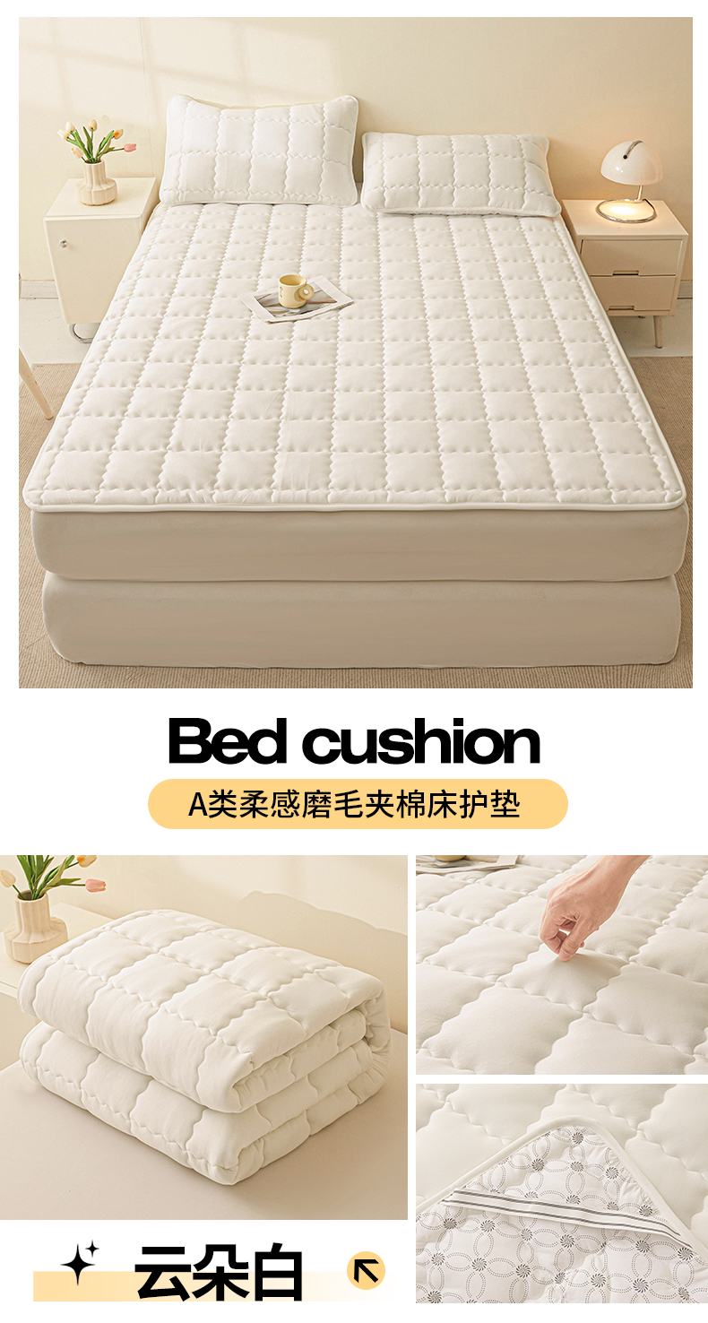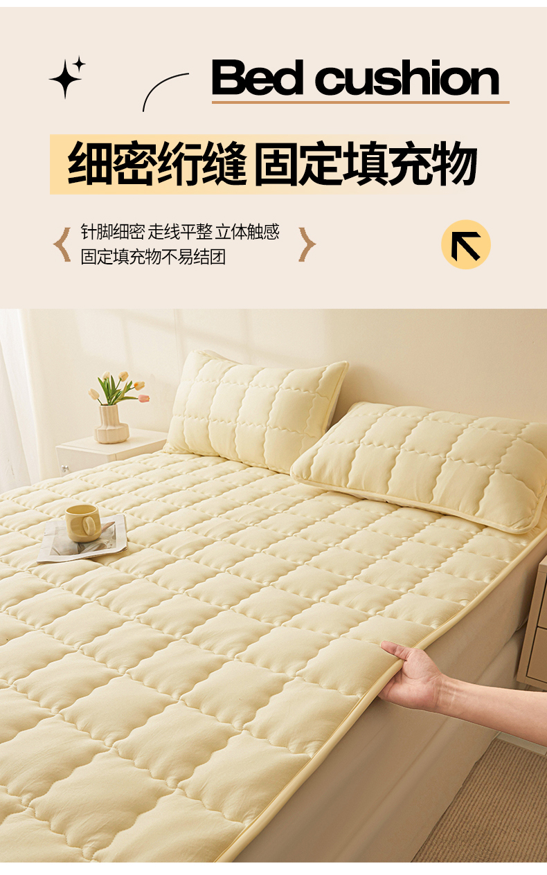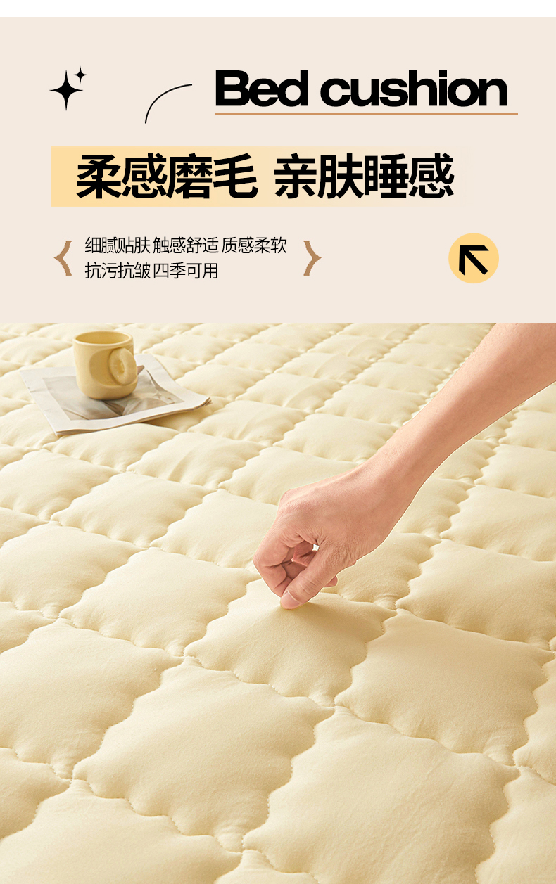 (总)迪梦思家纺 2025新款A类亲肤磨毛床垫床护垫铺床褥子夹棉床垫,奶油黄,青果绿,星辰灰,云朵白