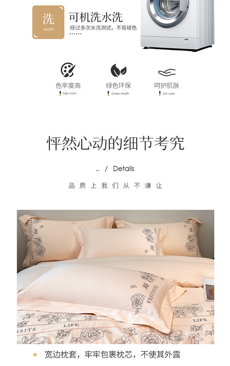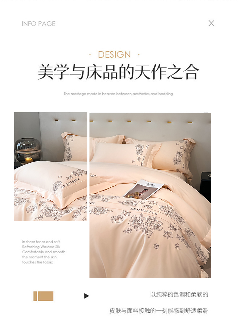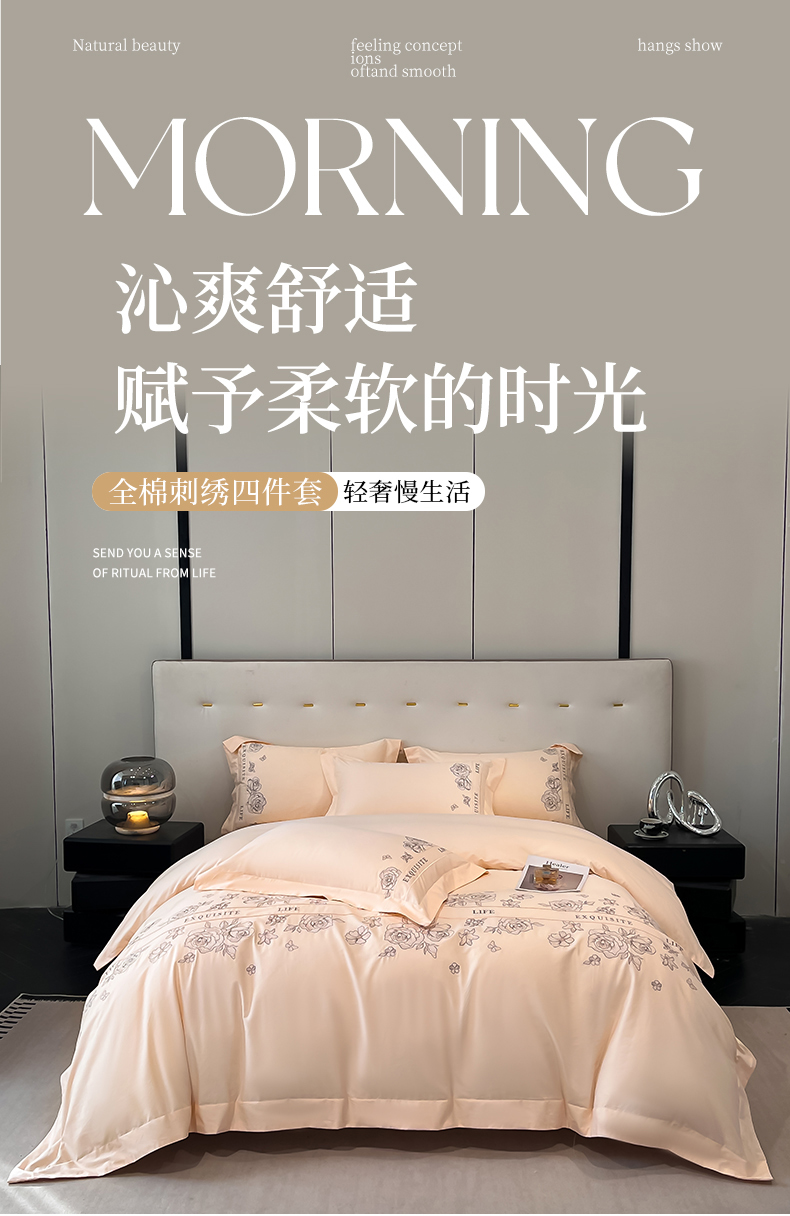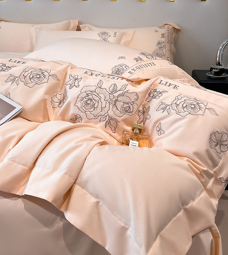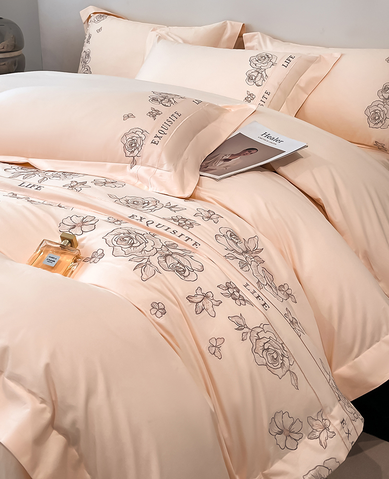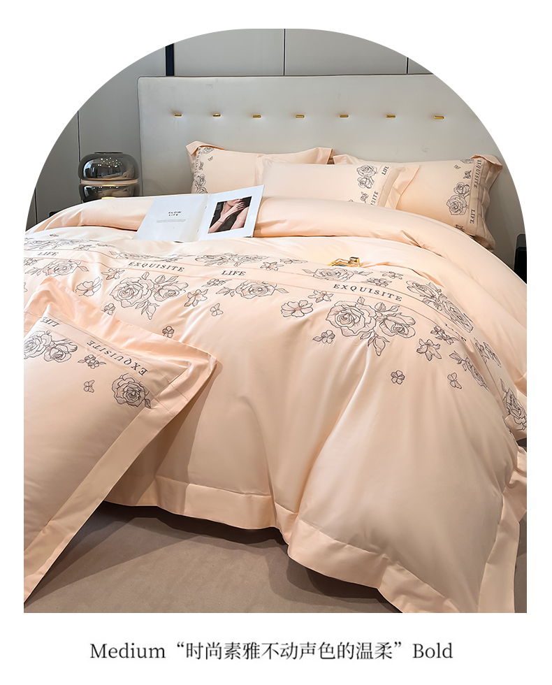 商品名称:金牛座家纺 2025新款长绒棉全棉刺绣四件套-倾心系列 倾心-淡雅粉