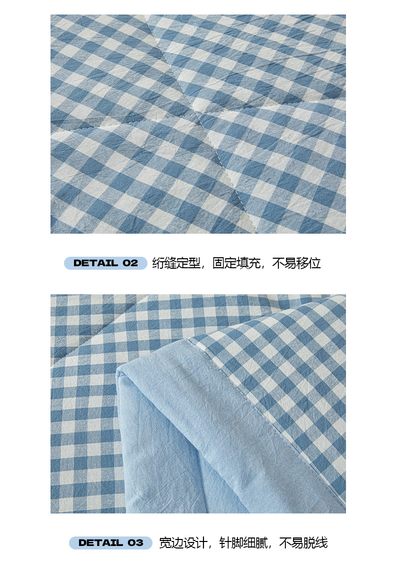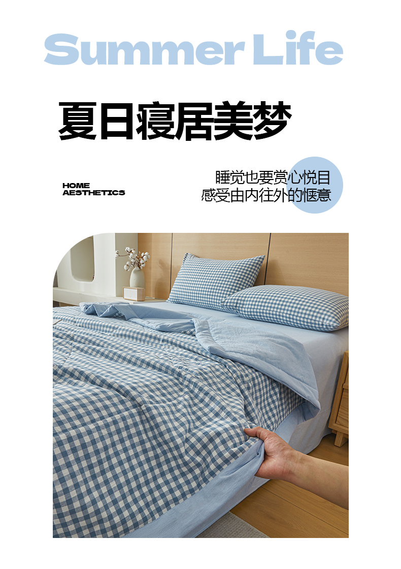 当前位置: 91家纺网 > 商品网购 > 床品套件 > 四件套 > 夏被四件套 > 雅萱家纺 2025新款色织夏被四件套 小格-蓝 夏被四件套