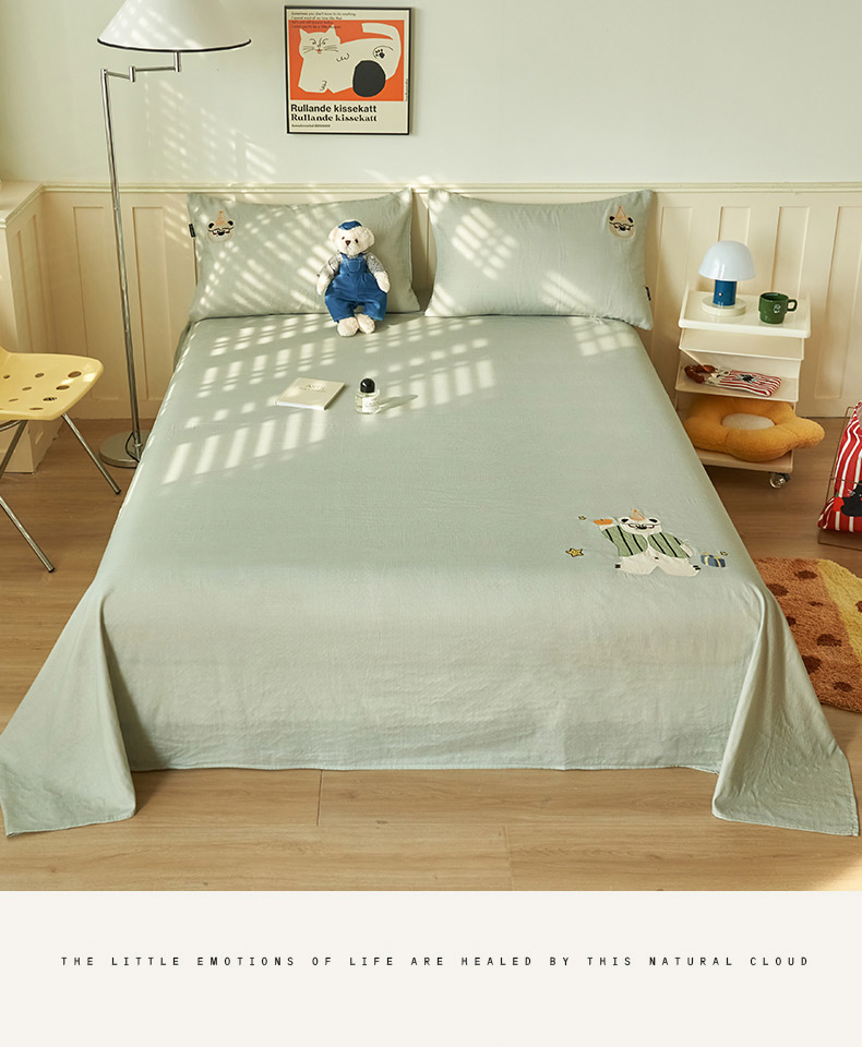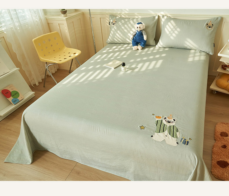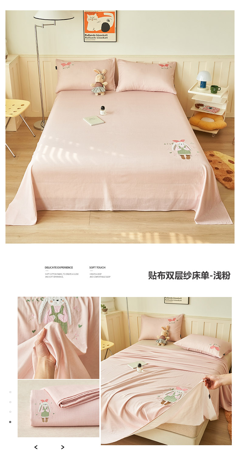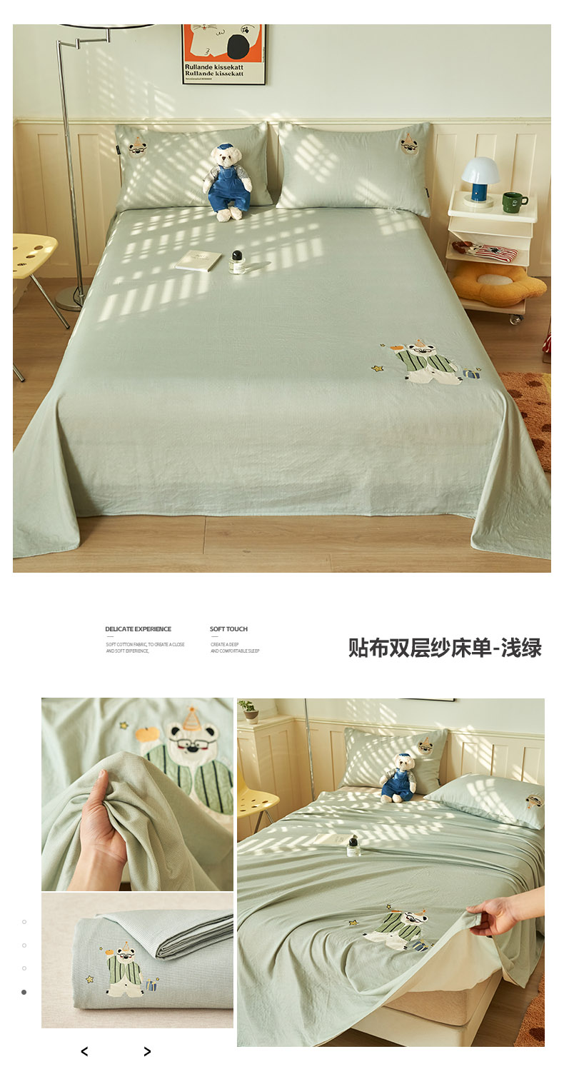 寐绸家纺 2025新款纯棉双层纱贴布绣单床单 贴布双层纱床单-浅绿
