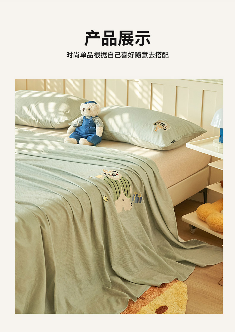当前位置: 91家纺网 > 商品网购 > 床上用品 > 床单 > 寐绸家纺 2025新款纯棉双层纱贴布绣单床单 贴布双层纱床单-浅绿