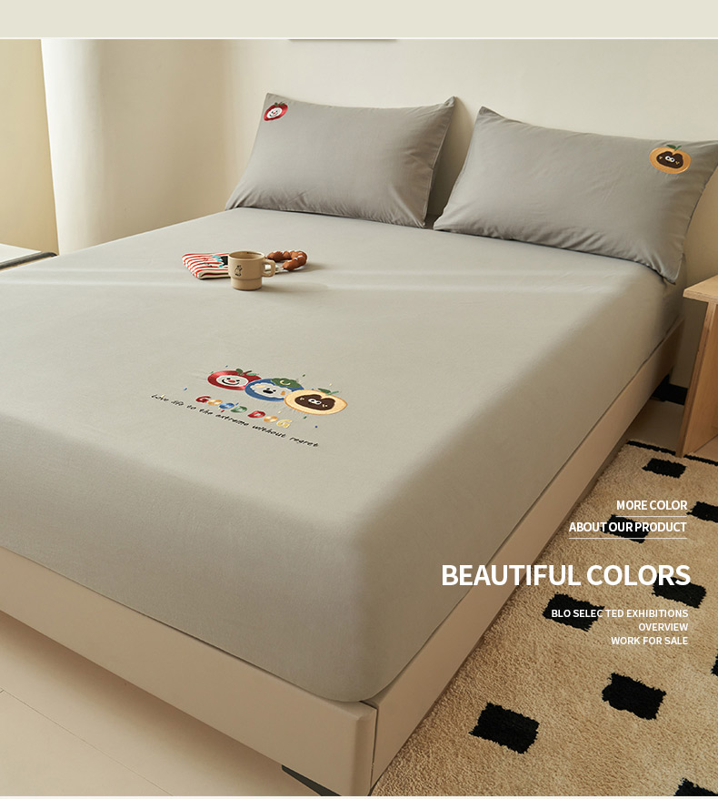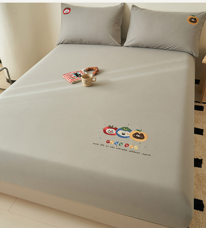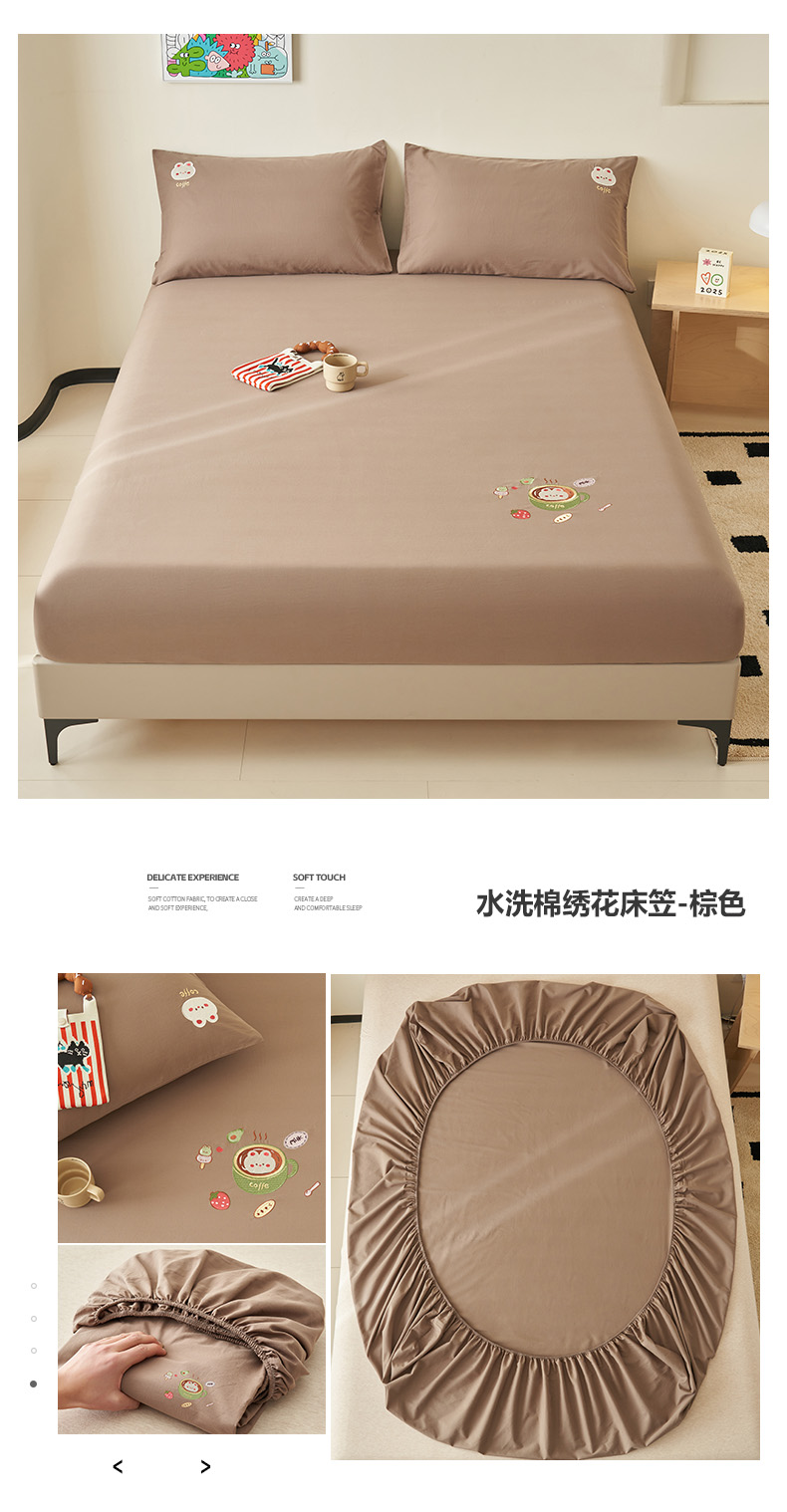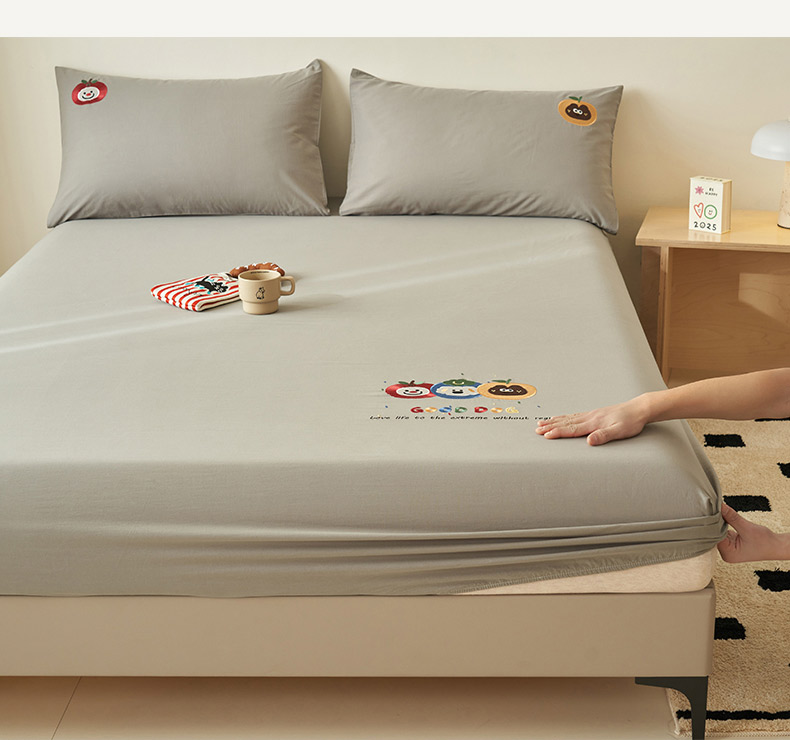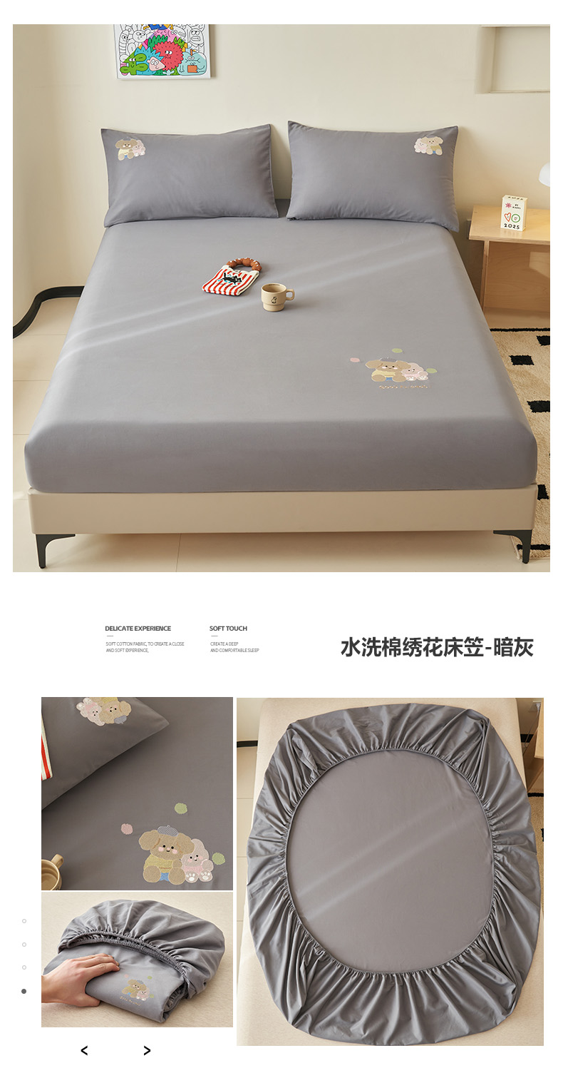• 91家纺网 家纺一手货源 找家纺 寐绸家纺 2025新款纯棉水洗棉纯色绣花单床笠 水洗棉绣花床笠-浅灰