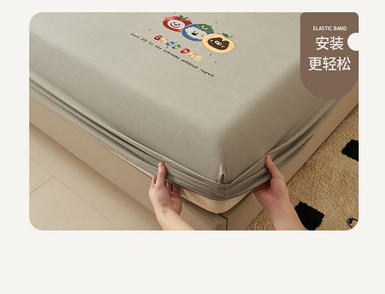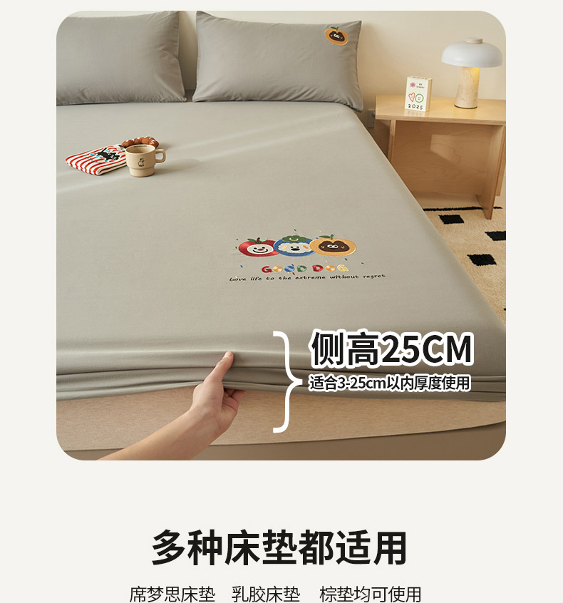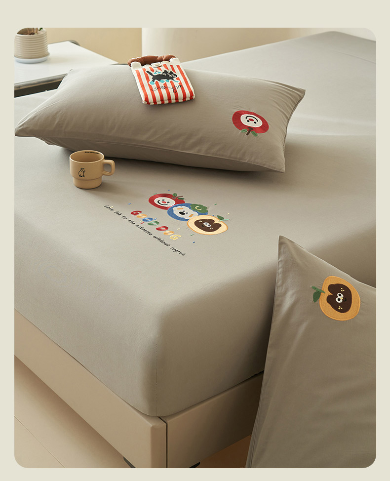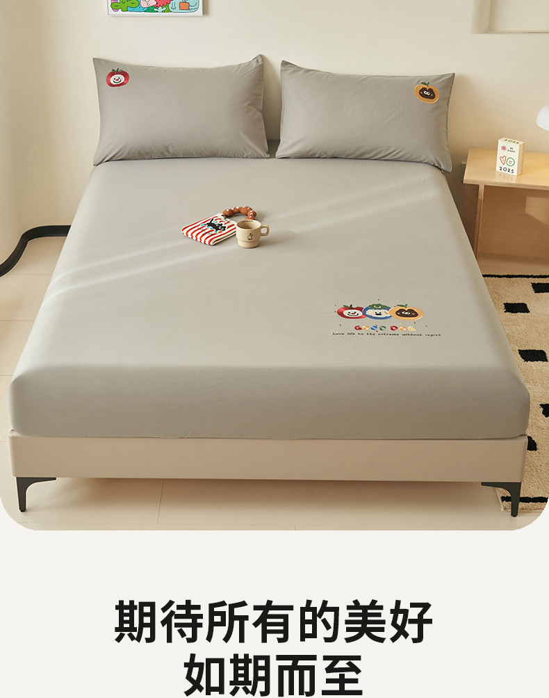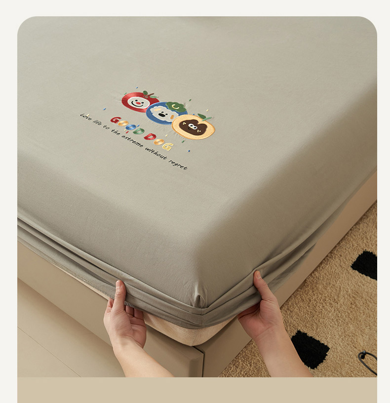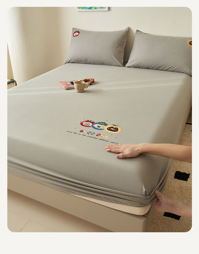 • 91家纺网 家纺一手货源 找家纺 寐绸家纺 2025新款纯棉水洗棉纯色绣花单床笠 水洗棉绣花床笠-浅灰