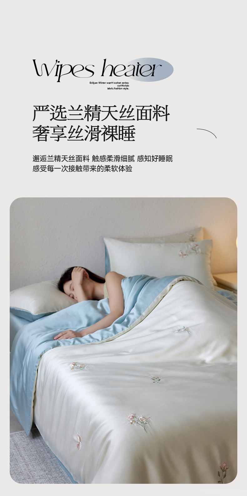 当前位置: 91家纺网 > 商品网购 > 床品套件 > 四件套 > 莱赛尔四件套 > 简纯主义 2025新款60S进口兰精天丝绣花四件套-花非花 花非花-蓝