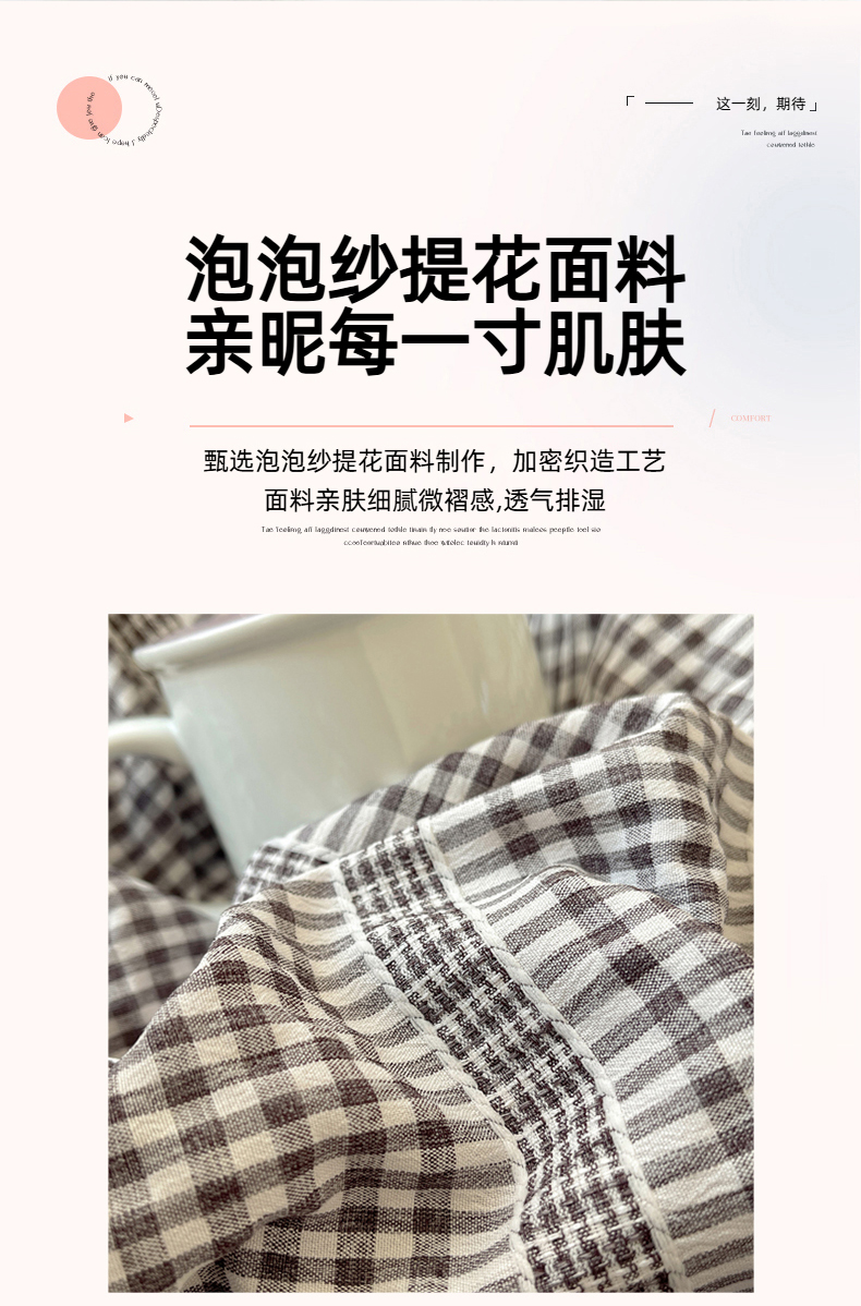 (总)十里居 2025新款泡泡纱提花韩版水洗棉公主格花边款四件套,罗兰紫,蜜桃粉,抹茶绿,柚子黄,月光灰,云朵蓝