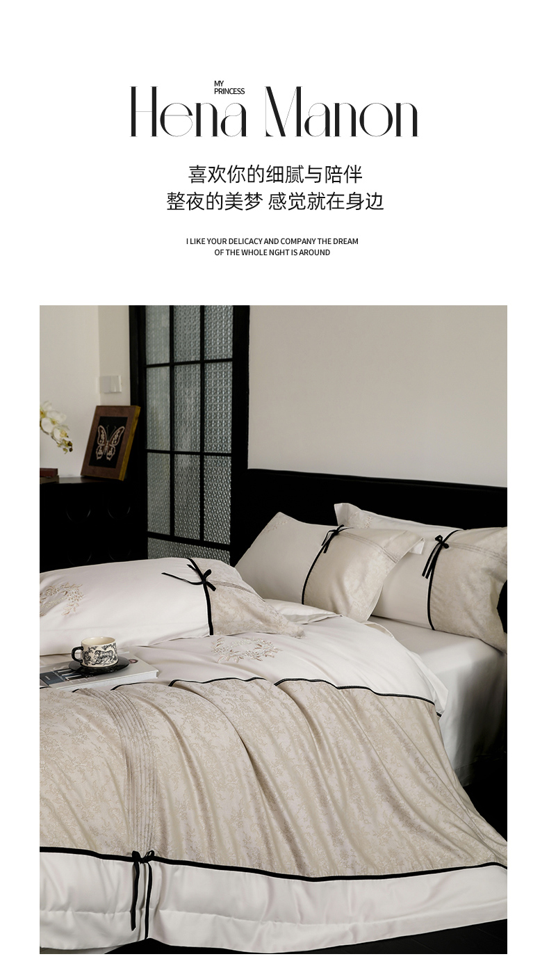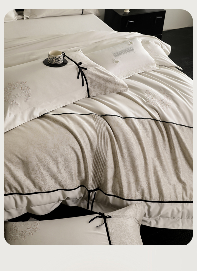 张公子婚庆馆 2025新款120支新疆长绒棉居家绣花工艺系列四件套-寐【控价不低于340】 寐-月光白