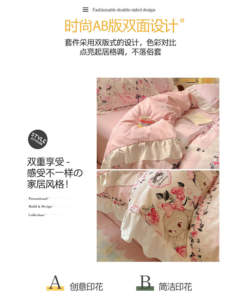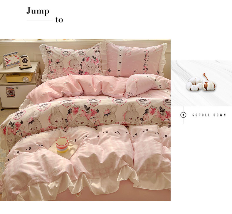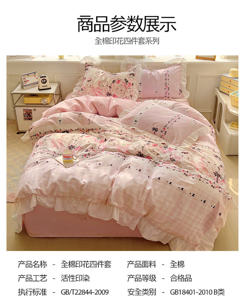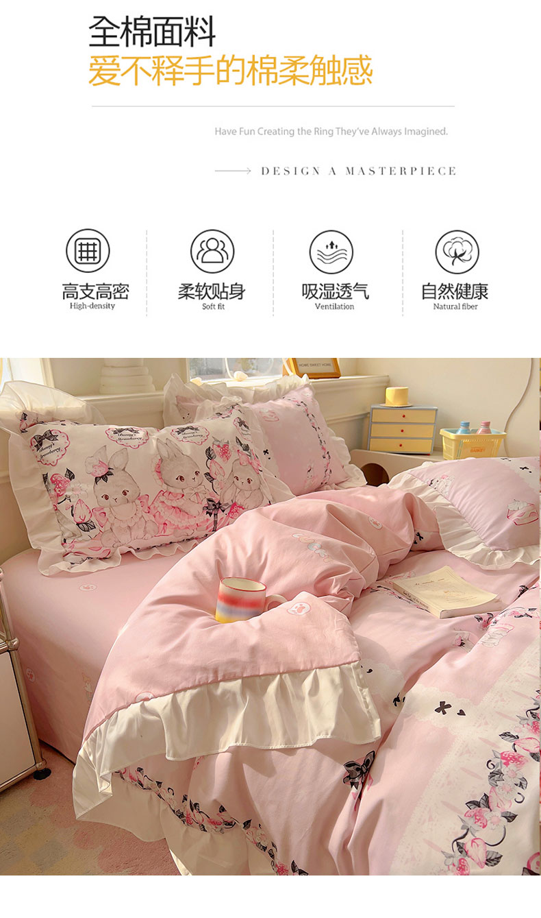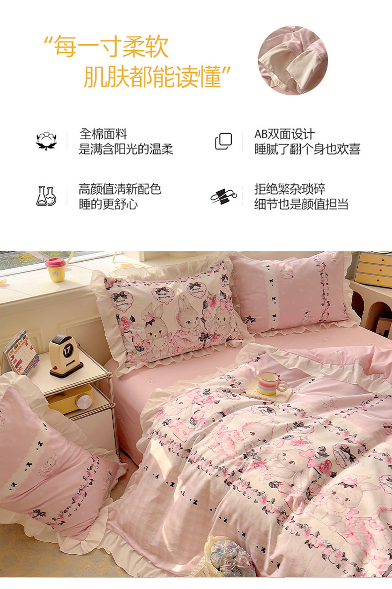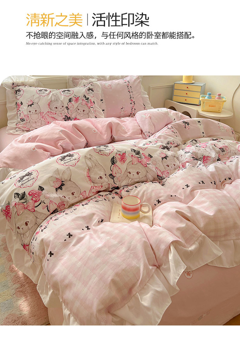 当前位置: 91家纺网 > 商品网购 > 床品套件 > 四件套 > 全棉普通四件套 > 浩诚 2025新款洛丽塔纯棉花边款四件套 粉红草莓兔