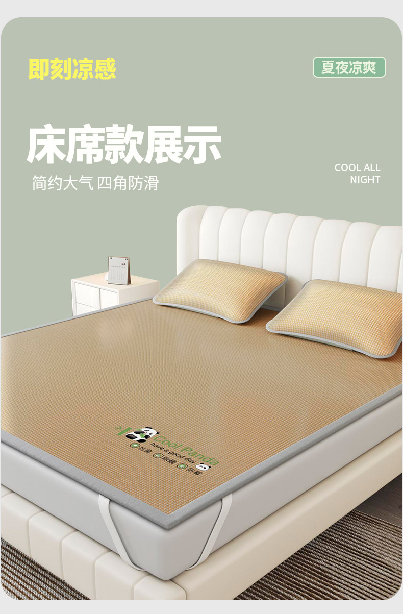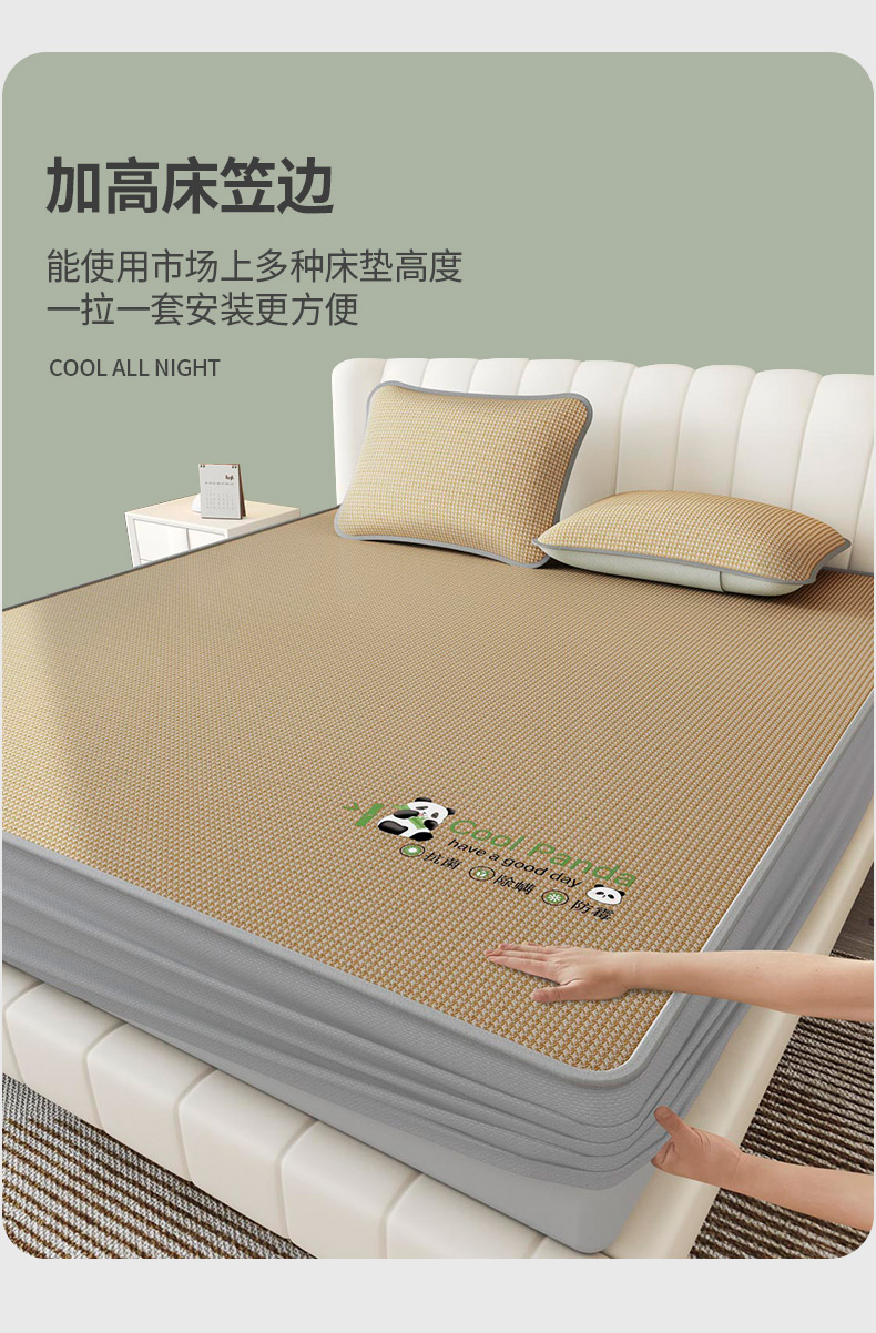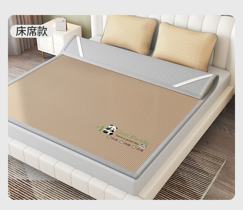 福来临家纺 2025新款清凉抗菌冰丝床席床笠-熊猫 熊猫-咖-床席款