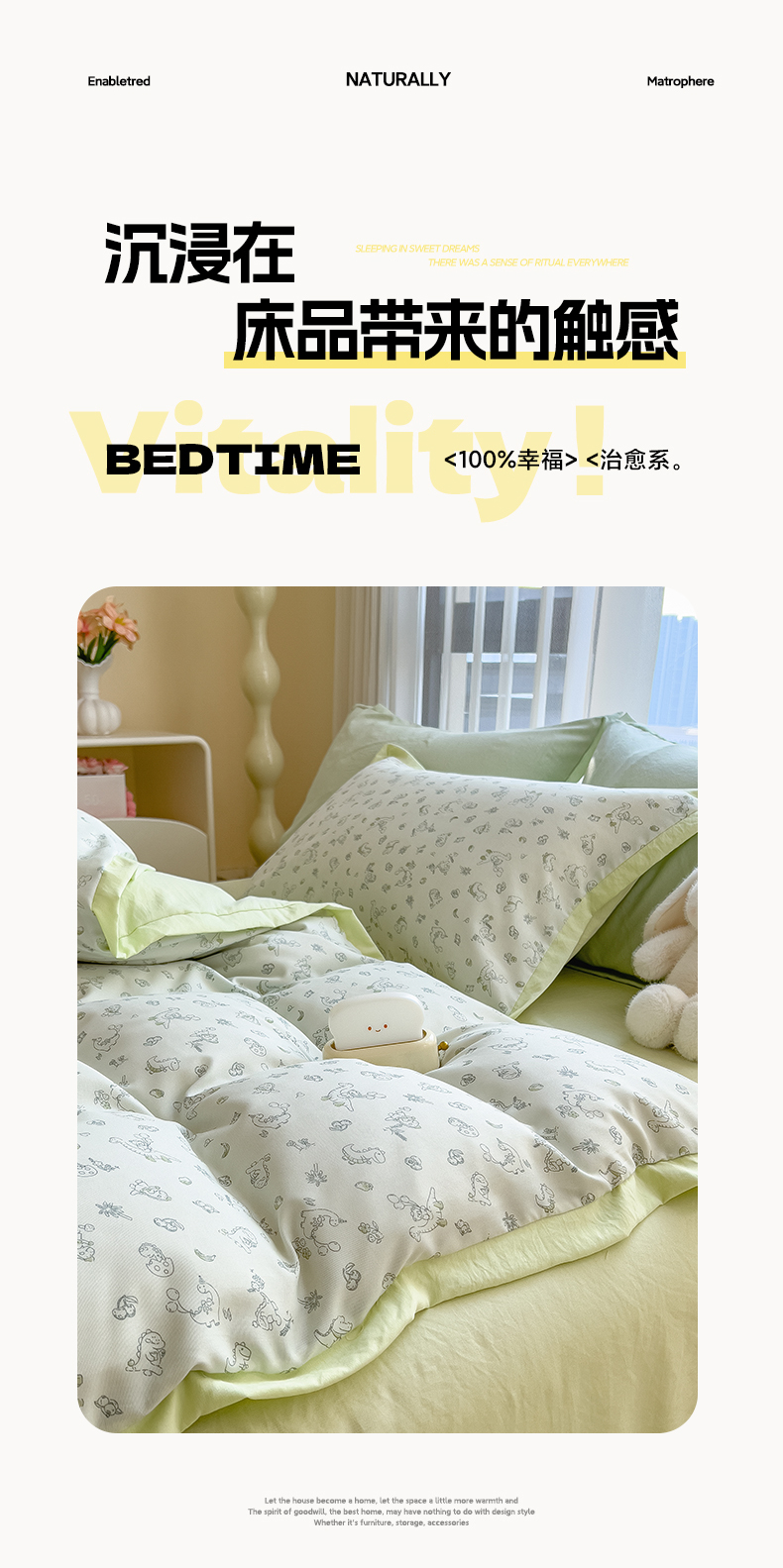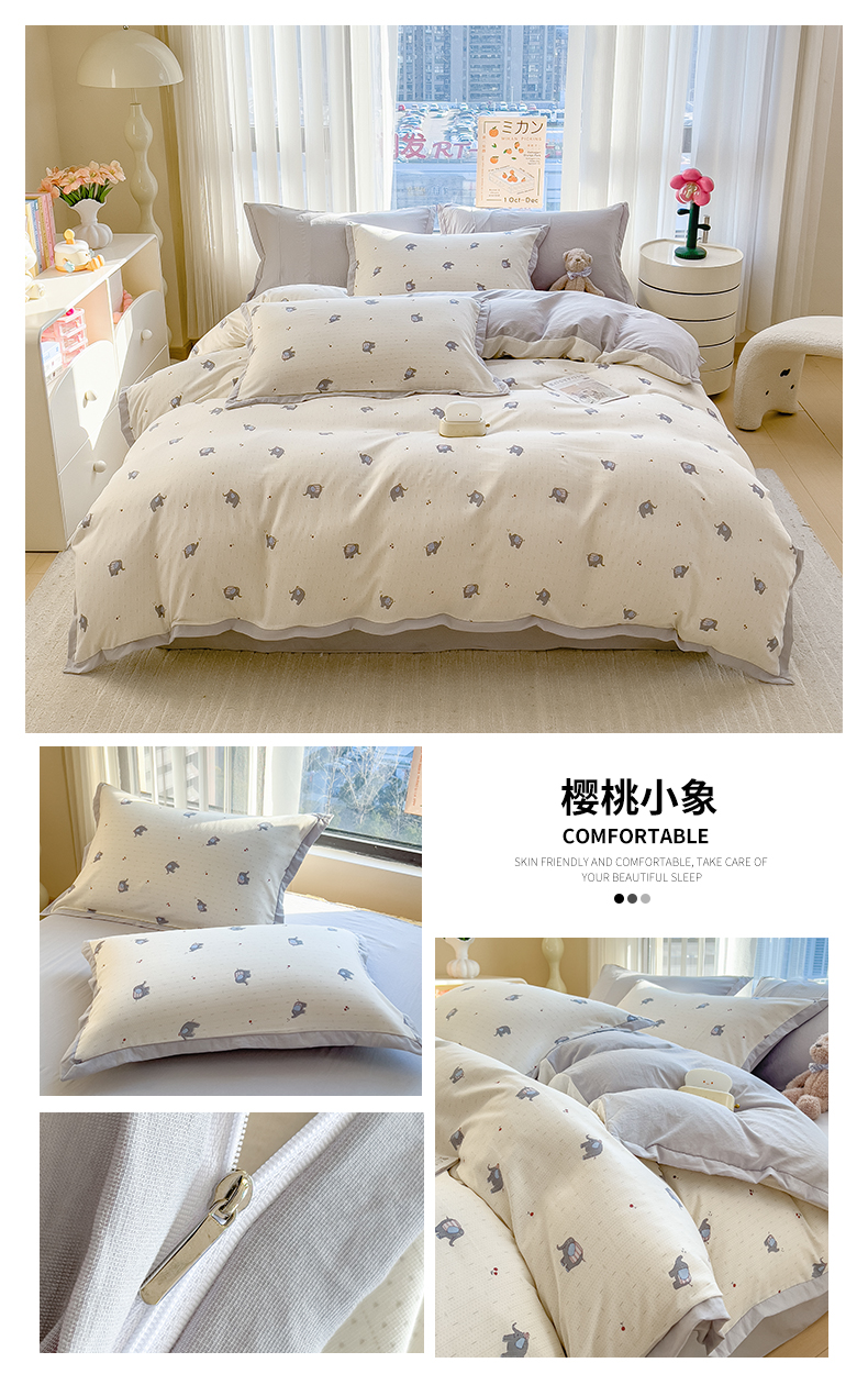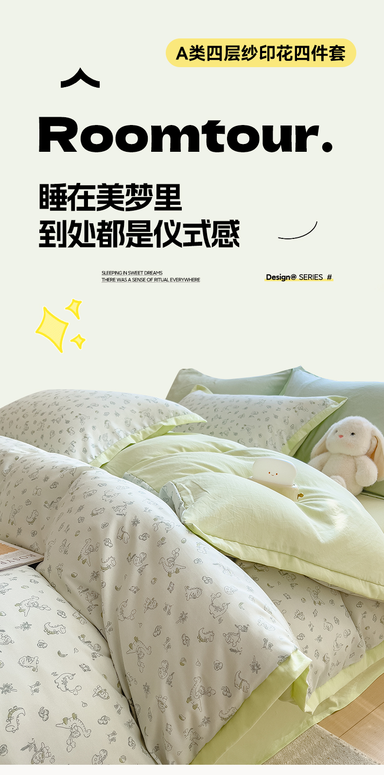当前位置: 91家纺网 > 商品网购 > 床品套件 > 四件套 > 双层纱四件套 > 兄弟坊 2025新款小清新四层纱印花四件套 初晴