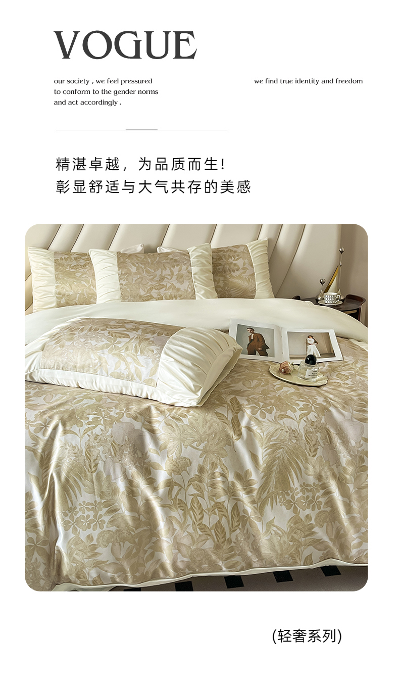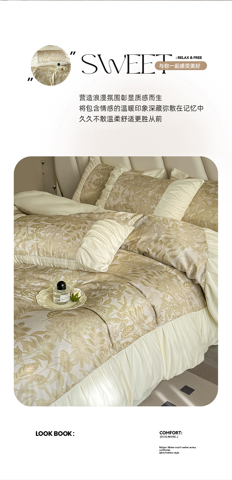 (总)千希家纺 2025新款麻绳拼接120g斜纹磨毛提花婚庆系列四件套,蝶恋花,竹恋,竹影清梦