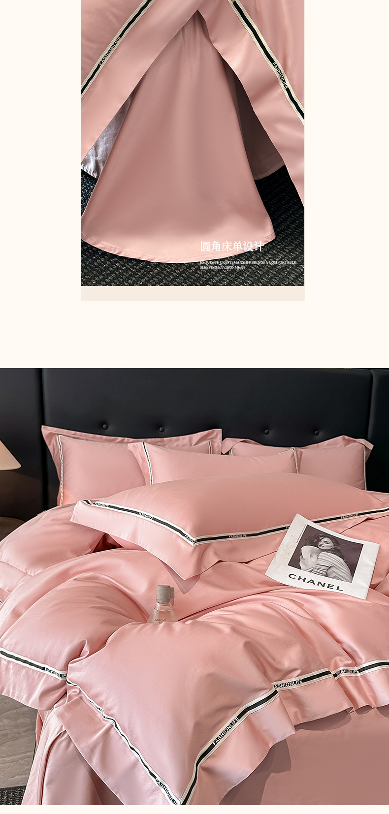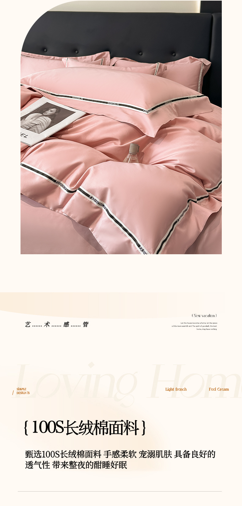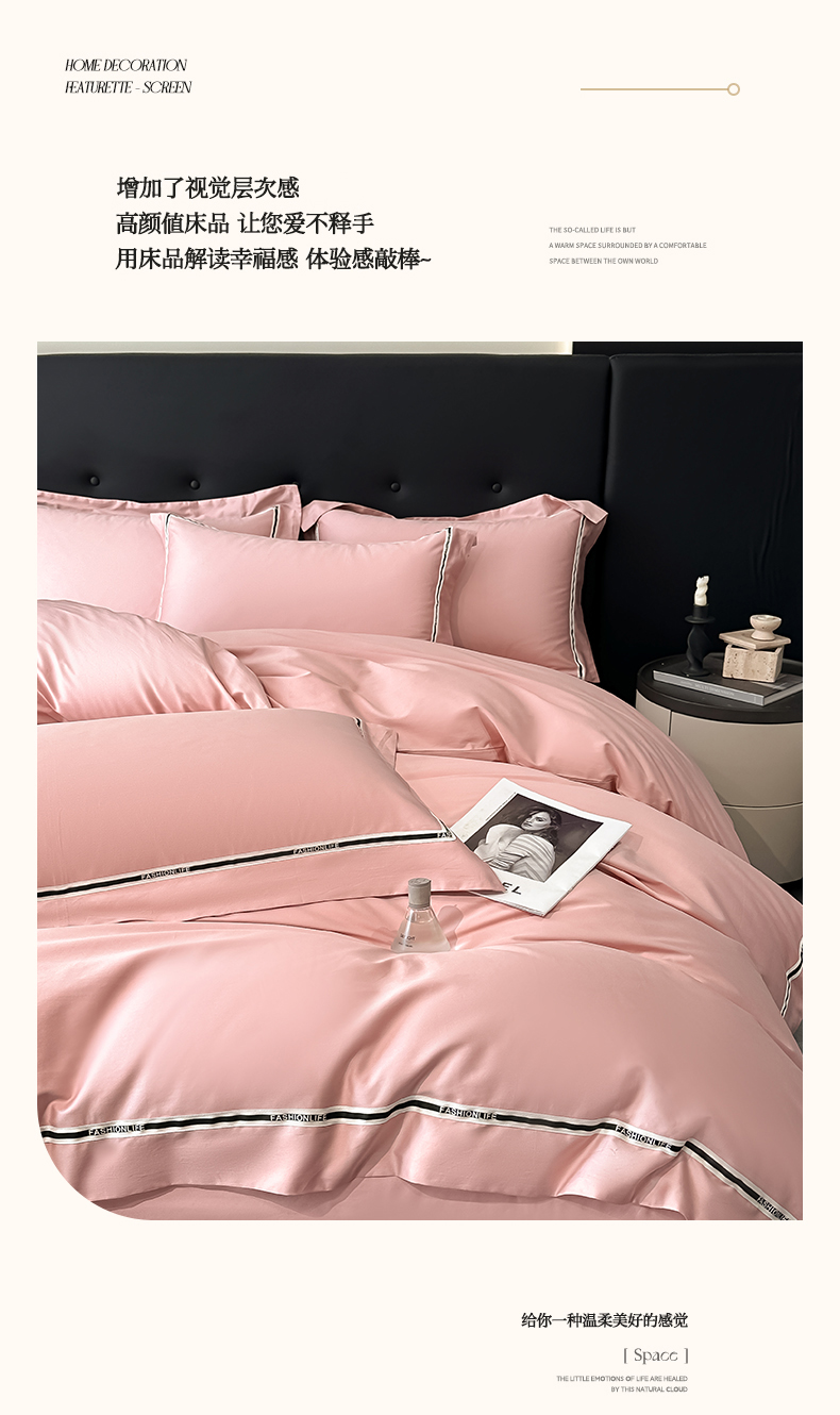 魅都 2025新款100支长绒棉简约织带轻奢风四件套-罗伊 亮粉