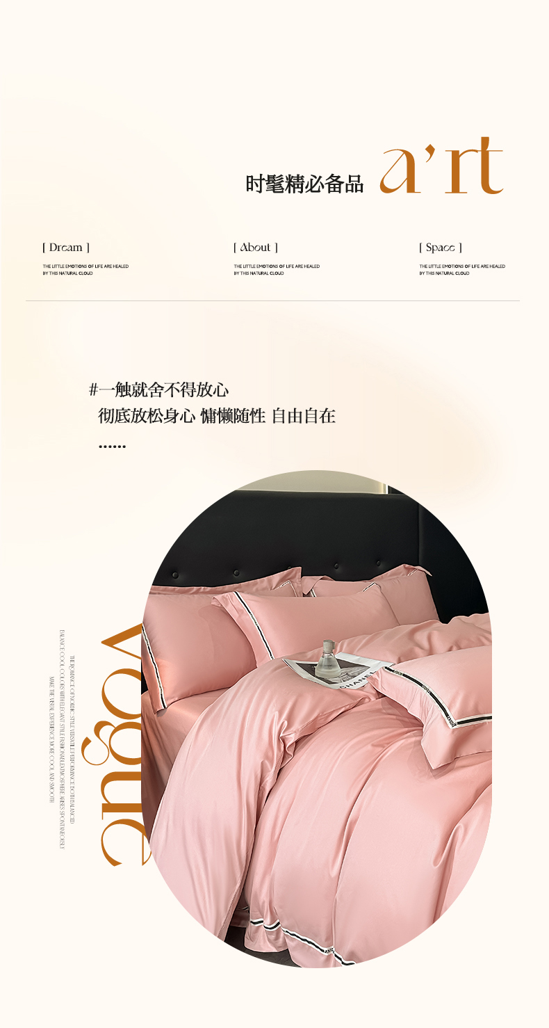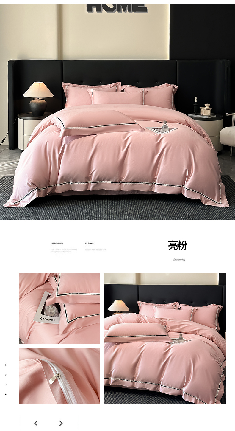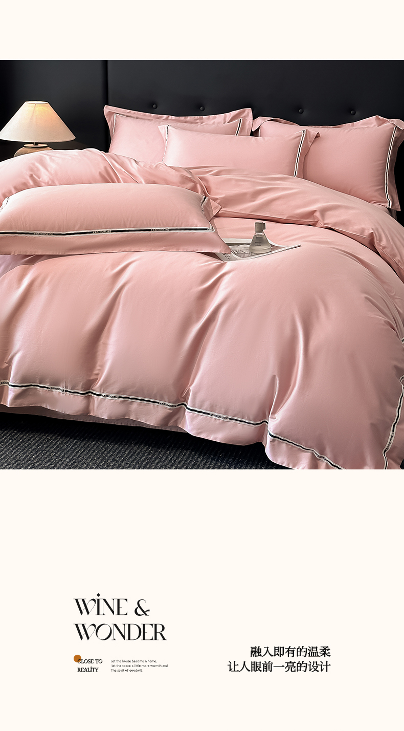 魅都 2025新款100支长绒棉简约织带轻奢风四件套-罗伊 亮粉