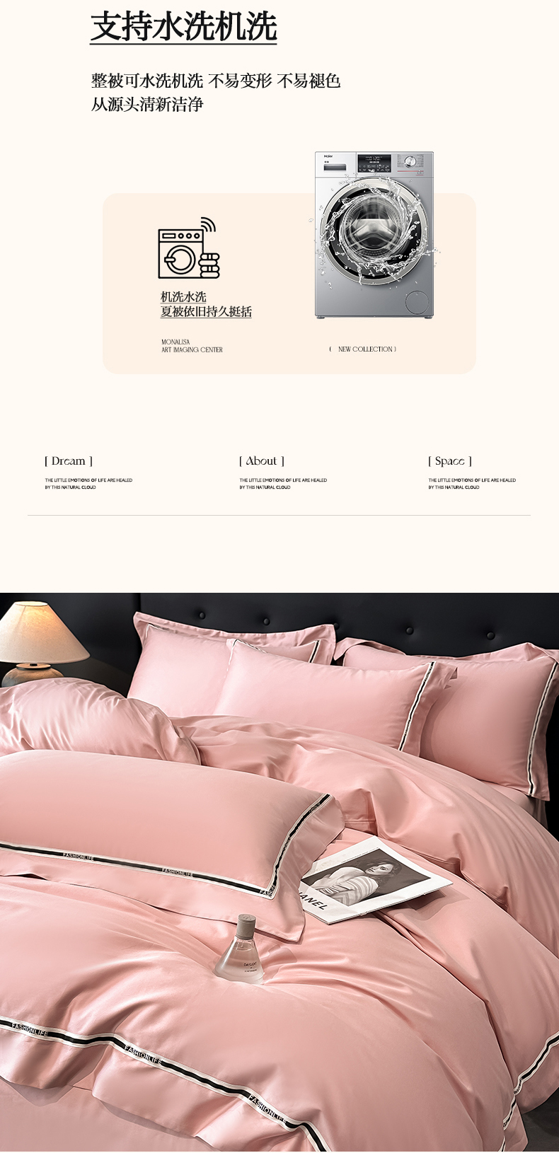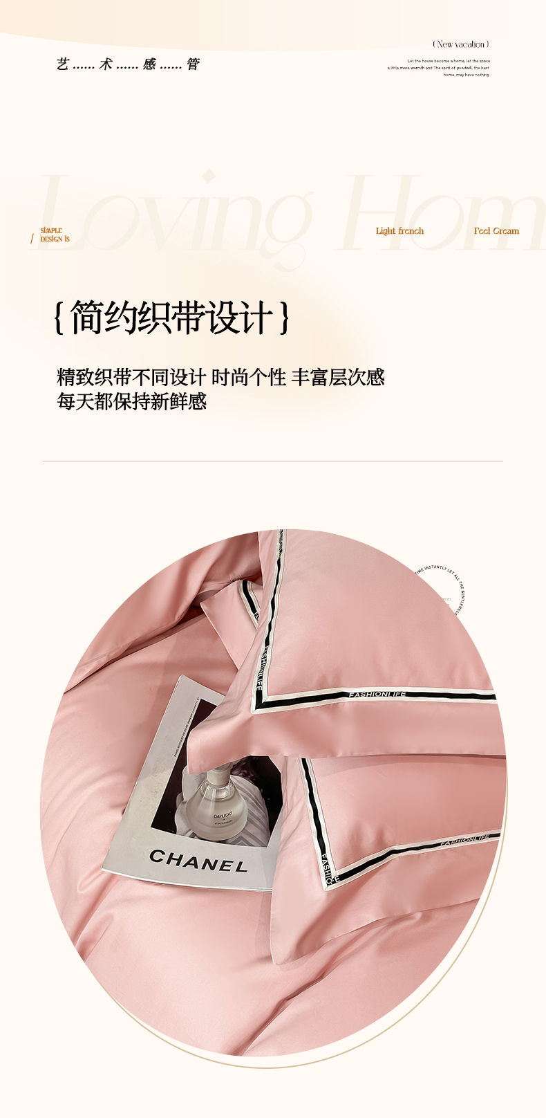 商品名称:魅都 2025新款100支长绒棉简约织带轻奢风四件套-罗伊 亮粉
