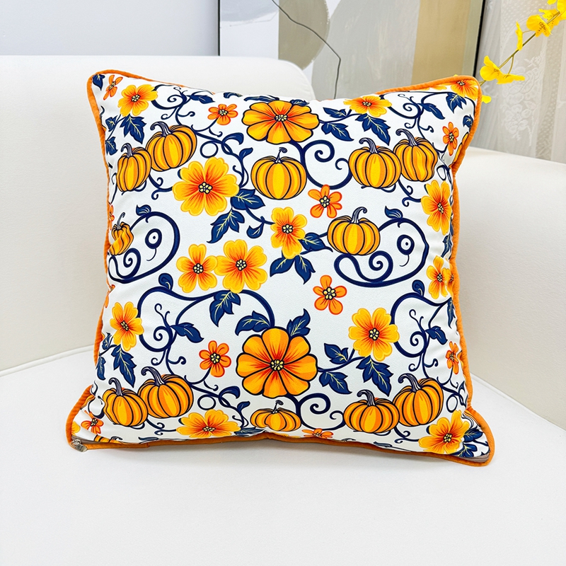 商品名称:爱家居 2025新款抱枕沙发新中式靠垫轻奢高级感靠枕床头大靠背正方形抱枕套卡通花卉 优雅小南瓜