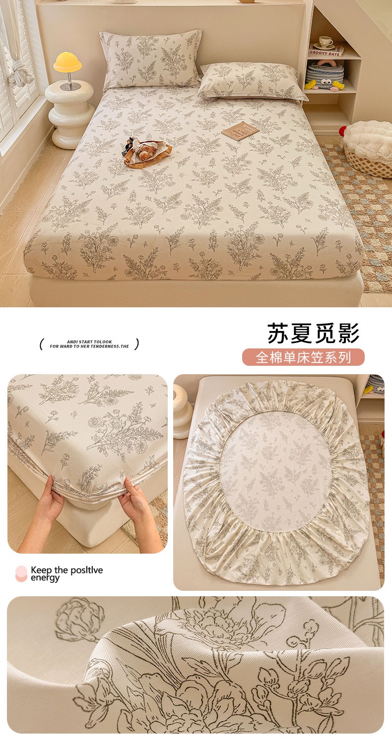 商品名称:2025新款12868全棉套件单品系列二单床笠 烟染秋色