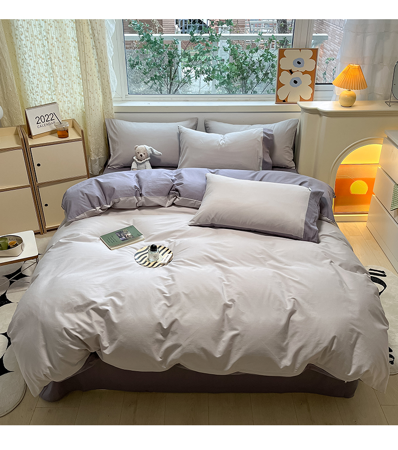 (总)卡巴伦家纺 2025新款全棉超细旦磨毛刺绣拼接四件套-旷野(会员:-20元 控价:358元),旷野-白,旷野-灰,旷野-咖,旷野-紫
