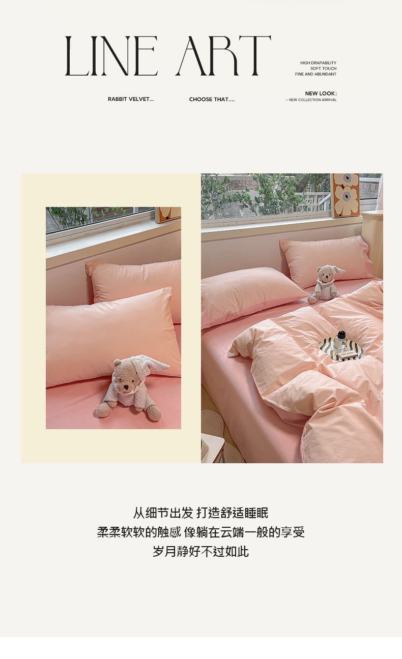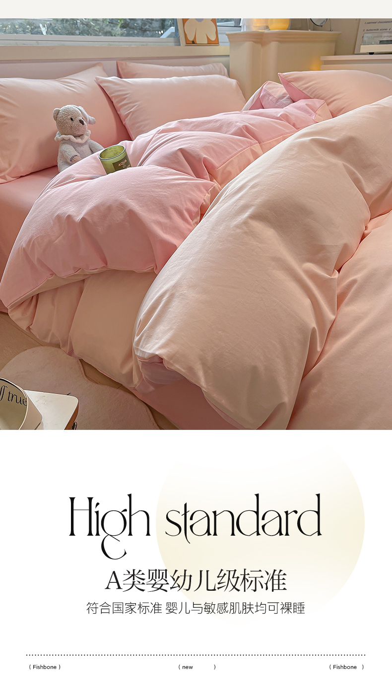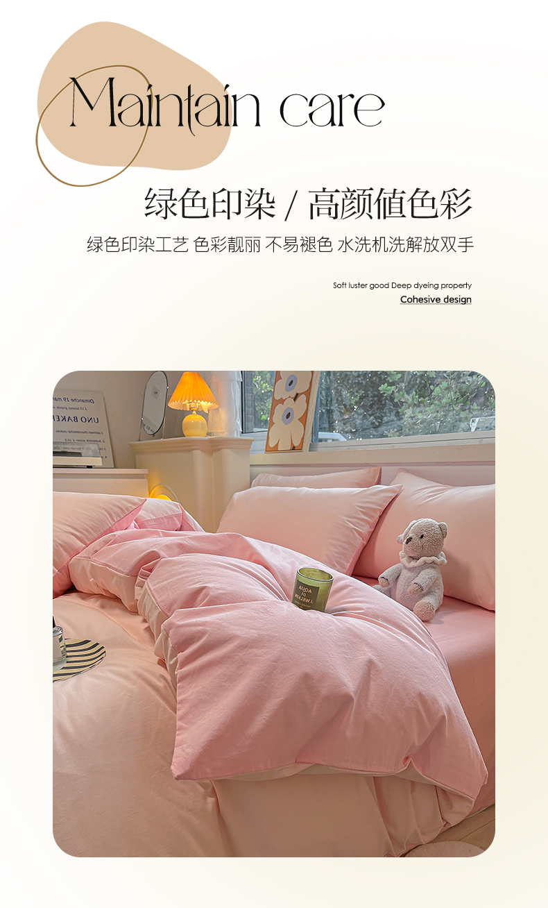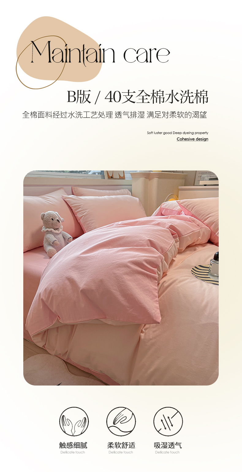 卡巴伦家纺 2025新款40支纯棉A类水洗棉四件套风格2 悠悠-樱花粉
