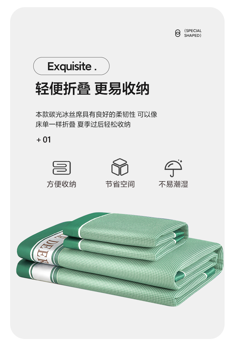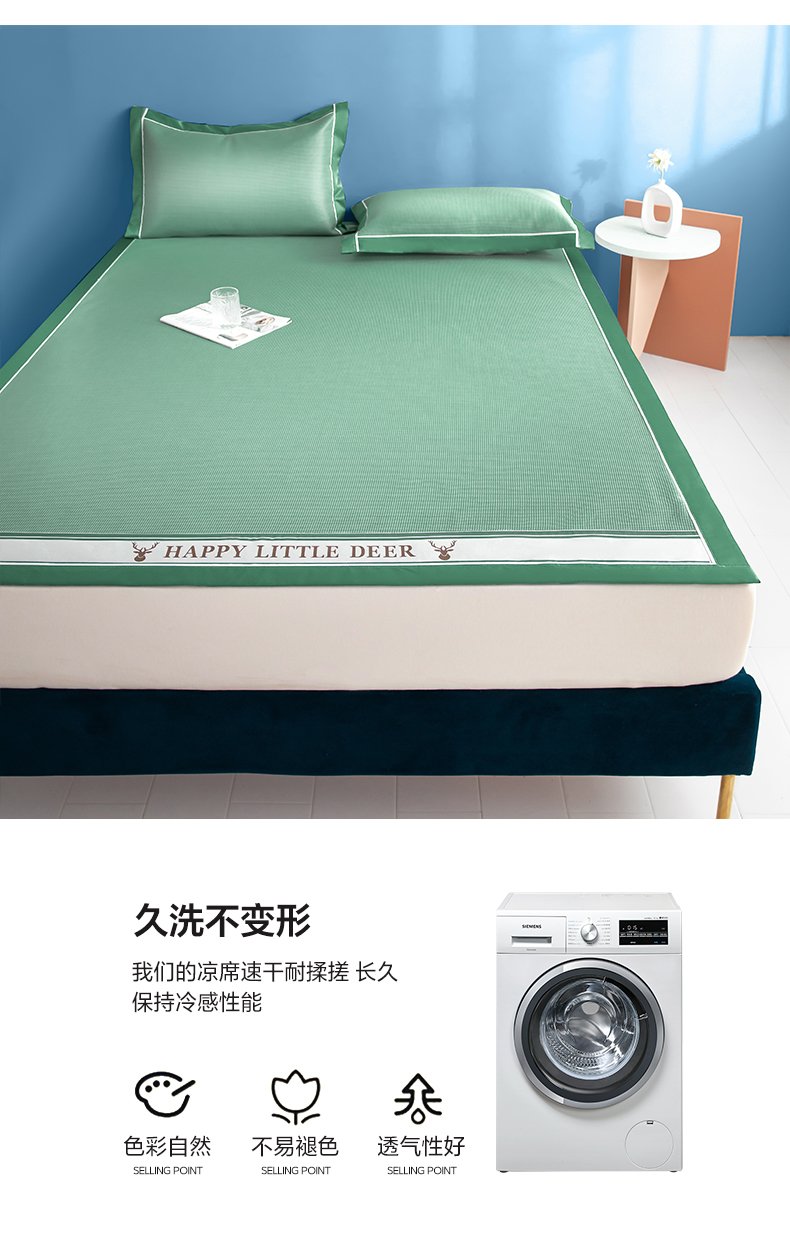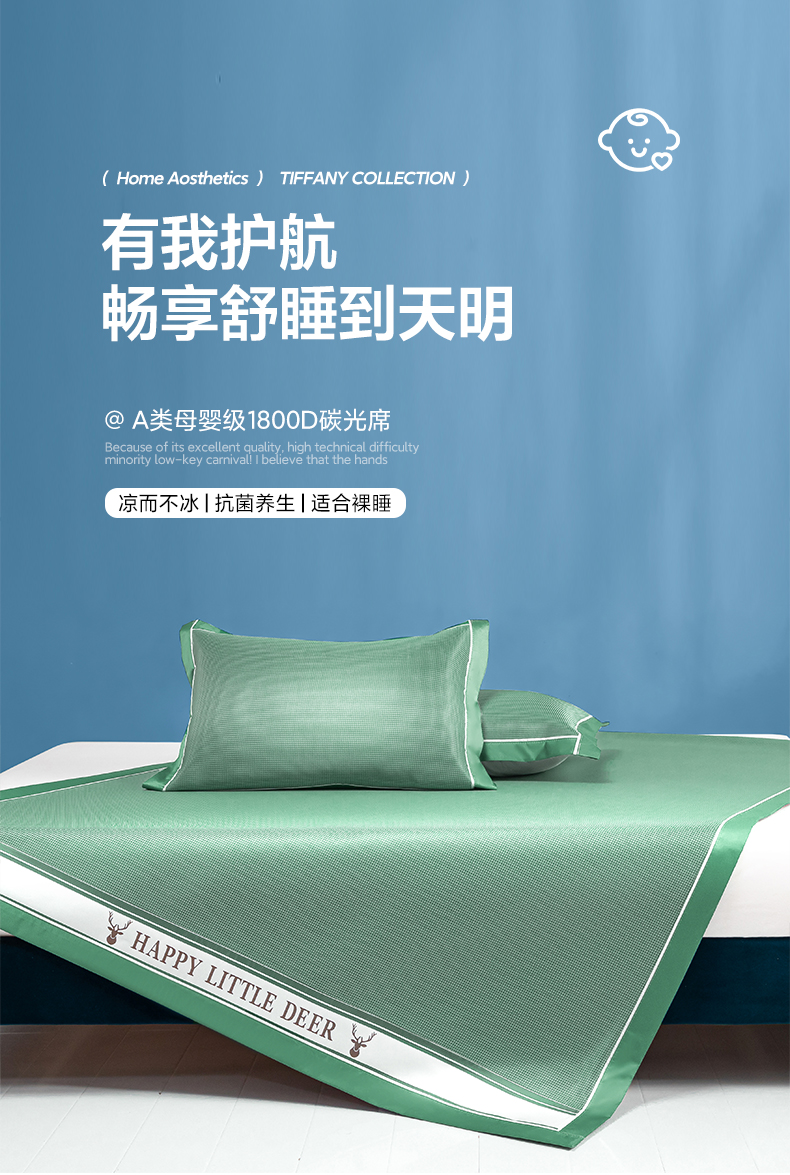 商品名称:阿亮家居 2025新款A类母婴级1800D碳光小鹿冰丝席凉席 繁星绿