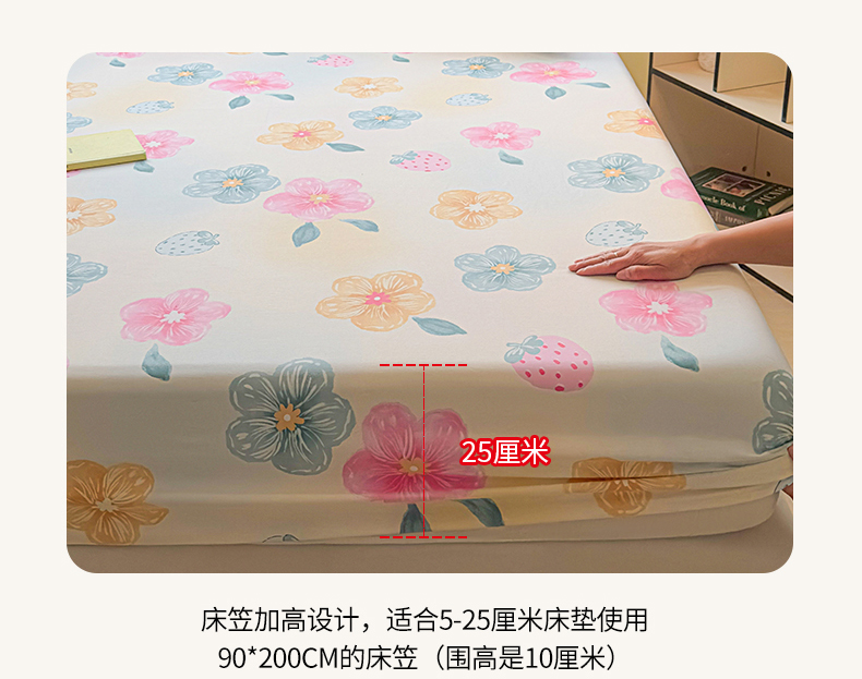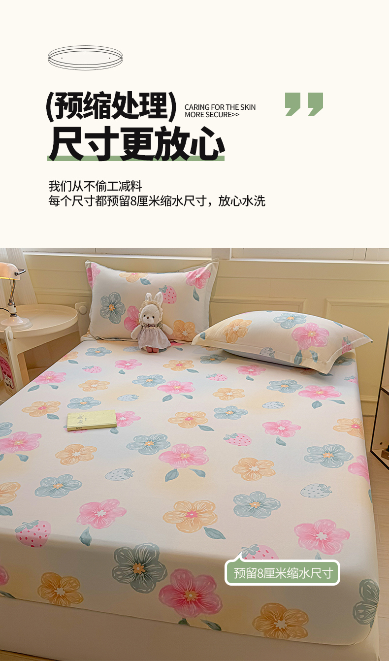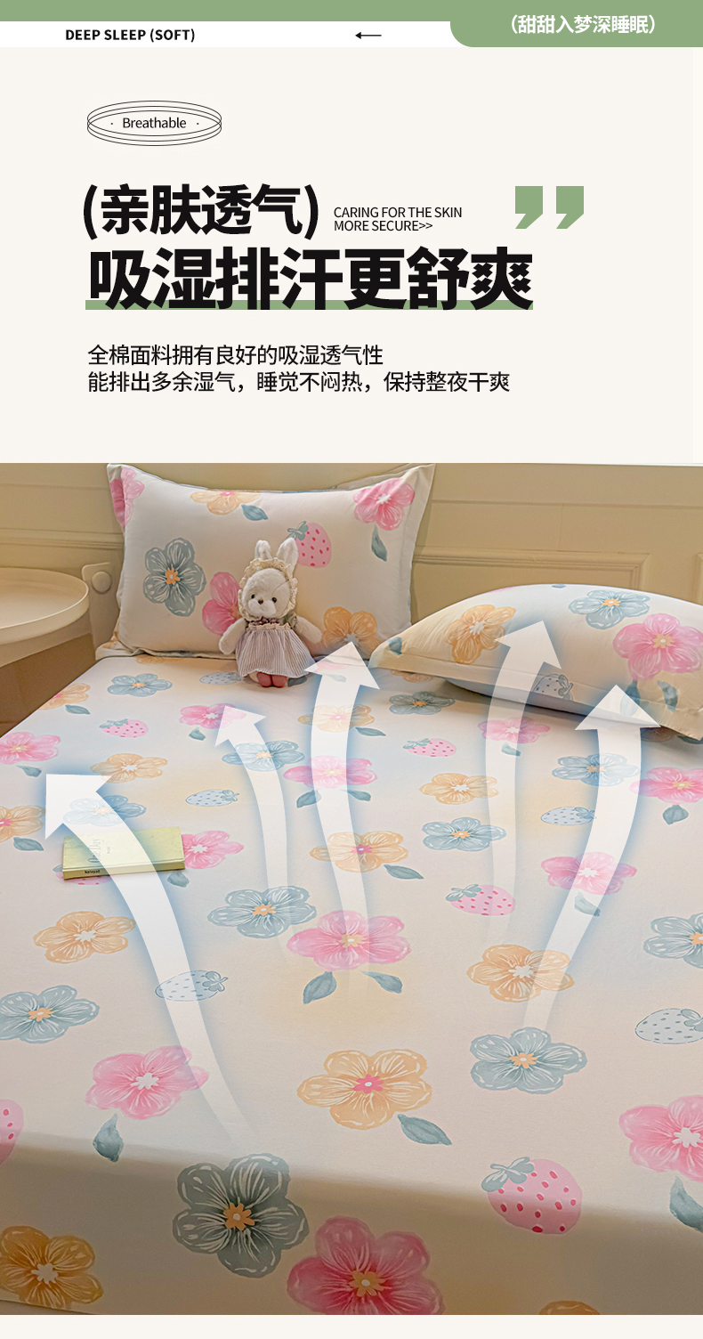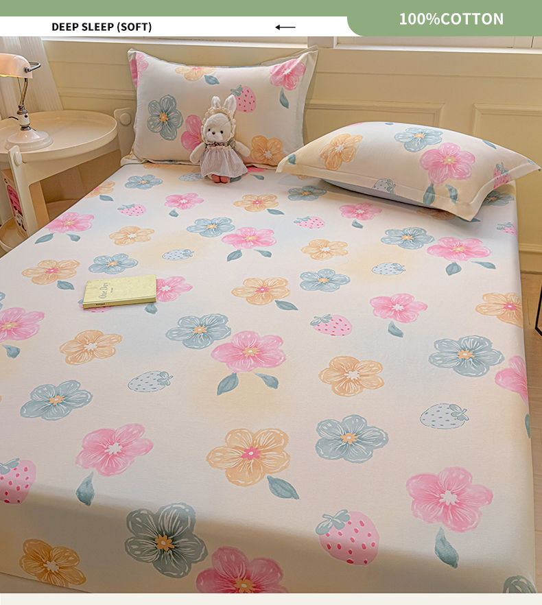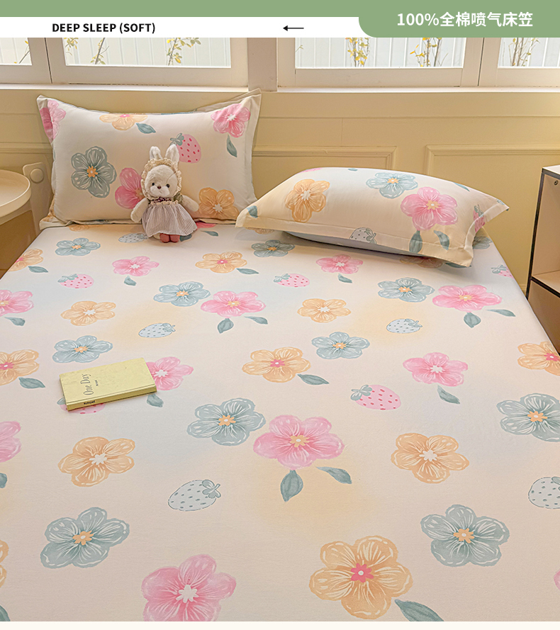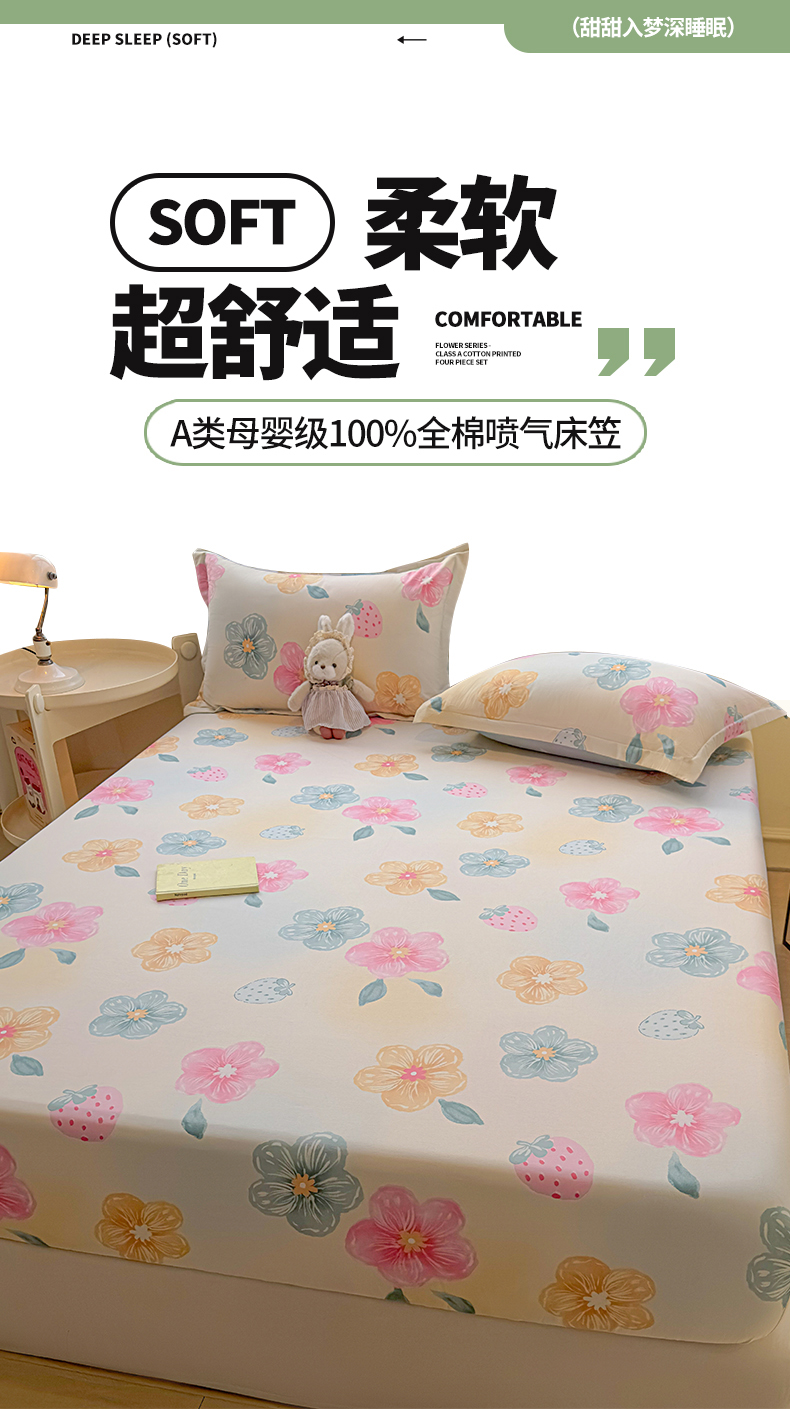 拾物记 2025新款A类无荧光全喷气全棉12868单床笠 茉莉草莓