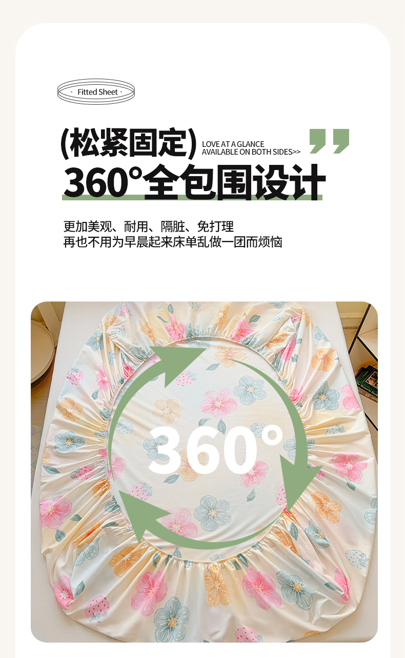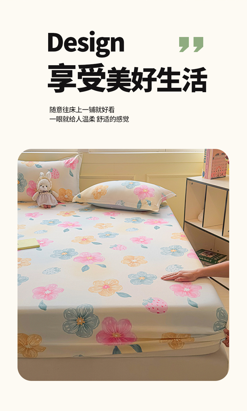 • 91家纺网 家纺一手货源 找家纺 拾物记 2025新款A类无荧光全喷气全棉12868单床笠 茉莉草莓