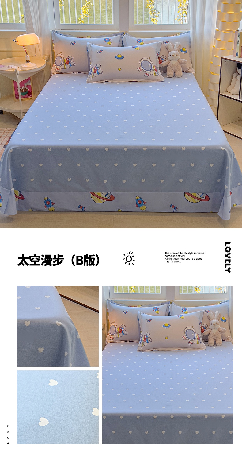 (总)拾物记 2026新款第一批12868A类全棉单品床单系列,森林伙伴,爱心喵,彩虹兔,草莓小狗,乘风宇宙,刺绣潮声,点点森林熊,粉粉猫咪酱,滚滚绣球团,花漫歌,简笔小汪,镜子海洋粉,开心派对,快乐宇航员,蓝星动物园,美梦花园,咪咕日常,太空卫士,太空熊,糖果幼儿园,糖纸童年,甜蜜纪念日,挽星河,星际仔仔,星星柯基,星星童话园,元气小布,云间甜梦,组合图