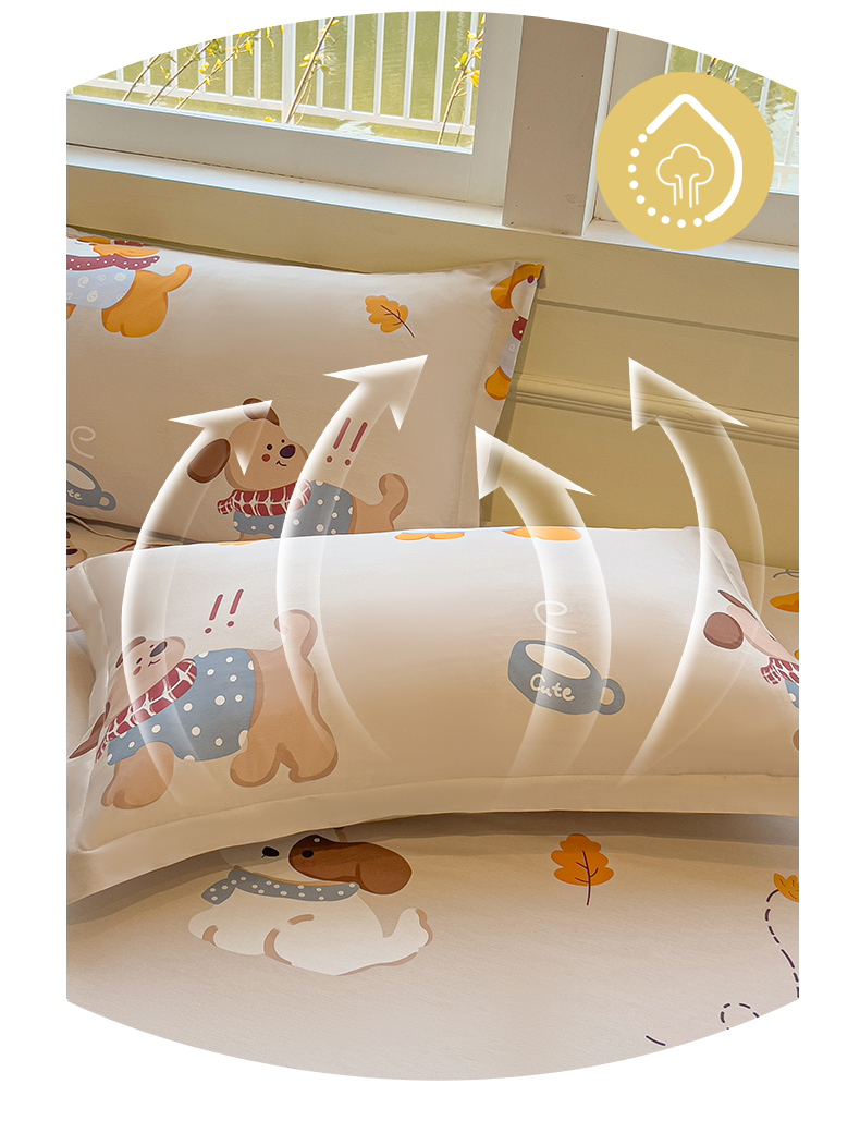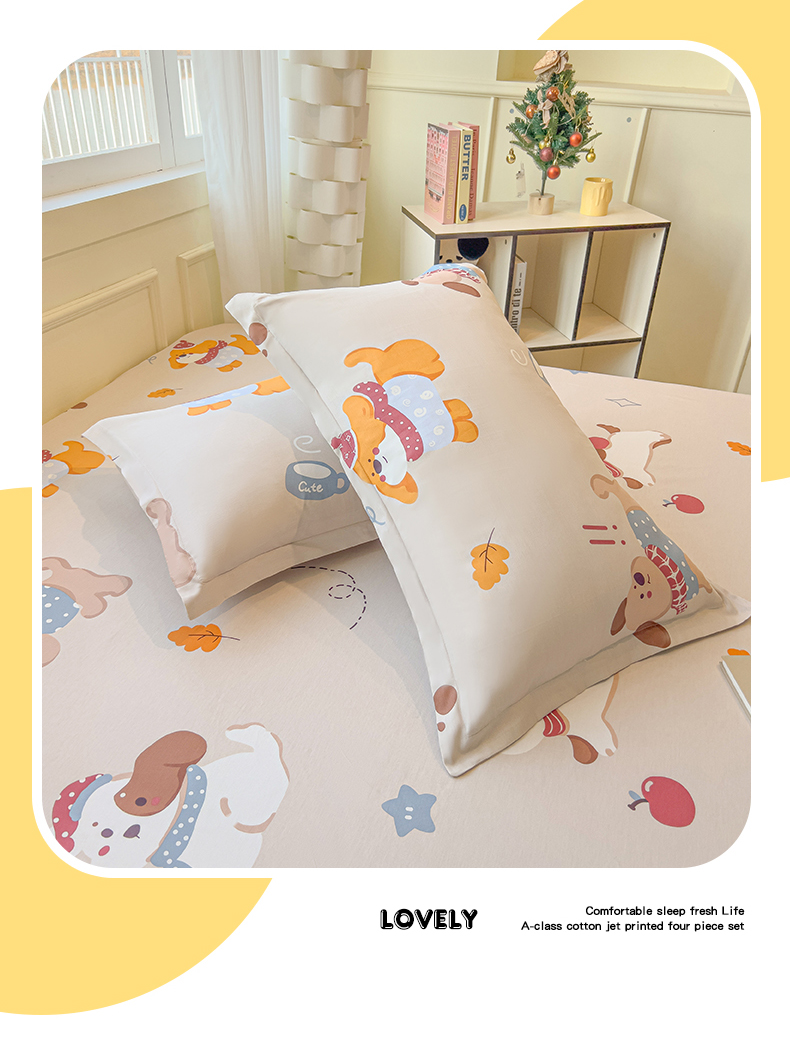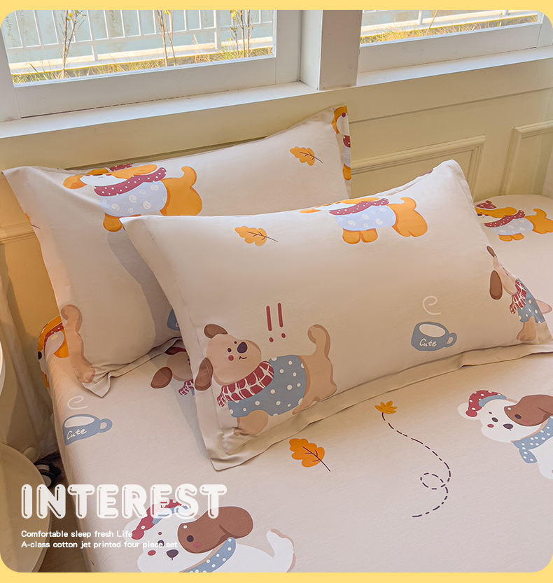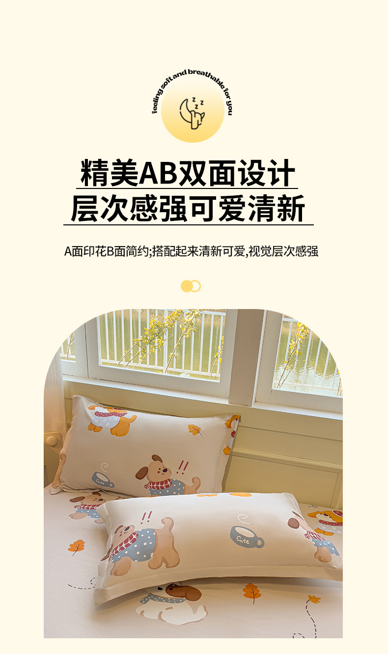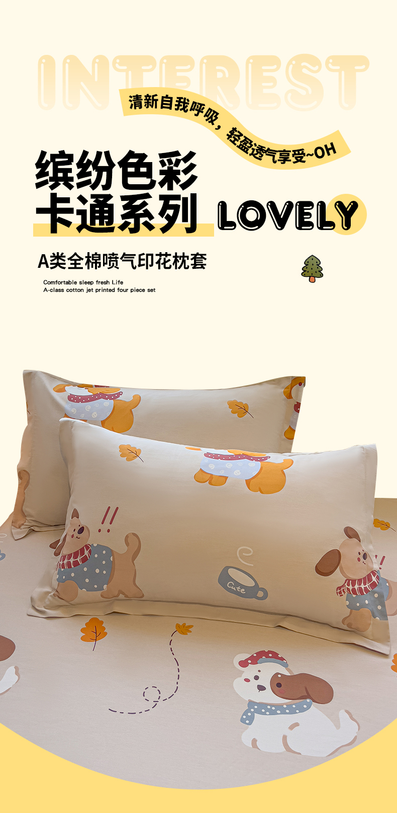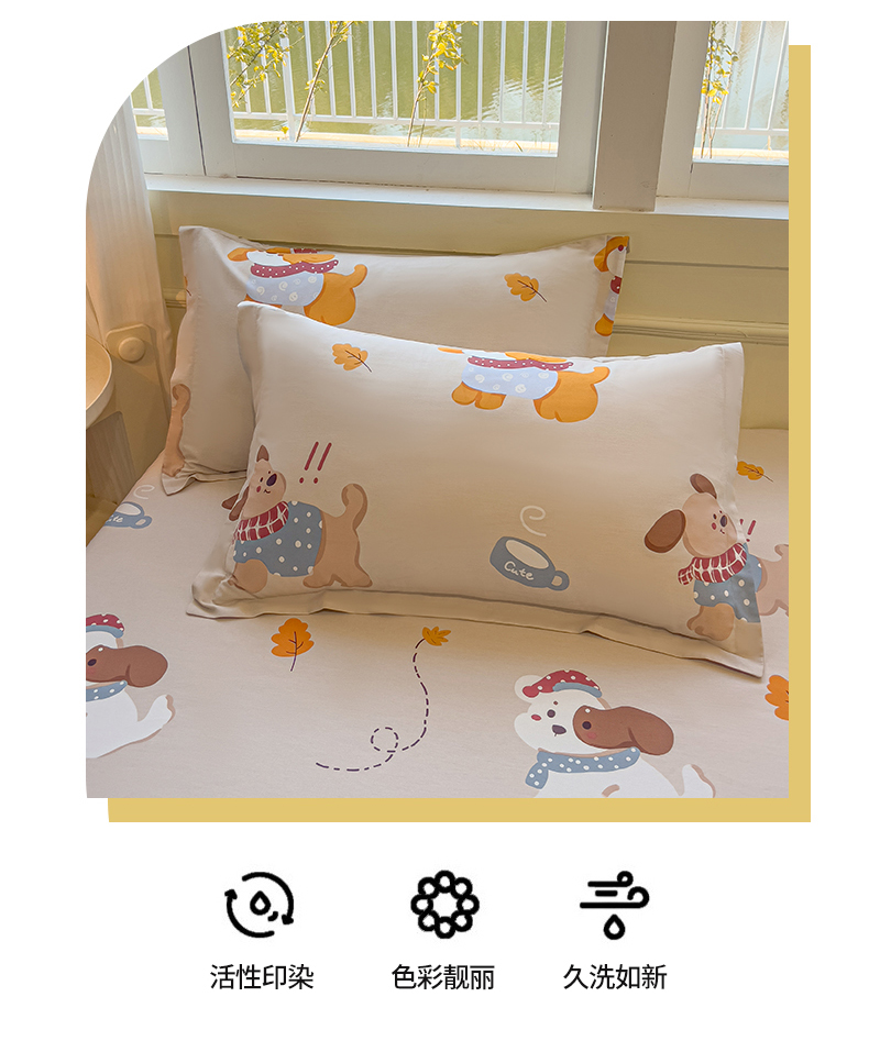 商品名称:拾物记 2025新款A类无荧光全喷气全棉12868单枕套 甜甜萌狗