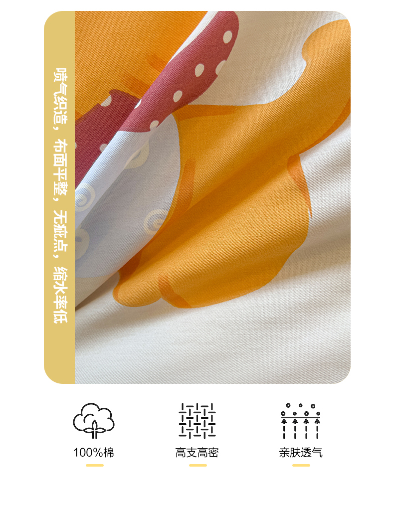 (总)拾物记 2023新款喷气全棉卡通小清新系列单被套,欢乐萌熊,奶油兔-红