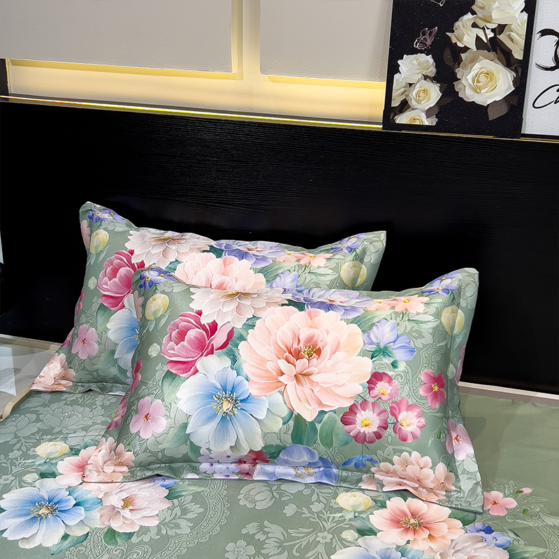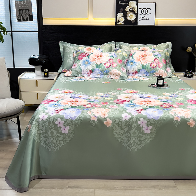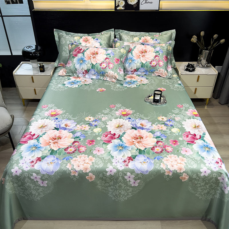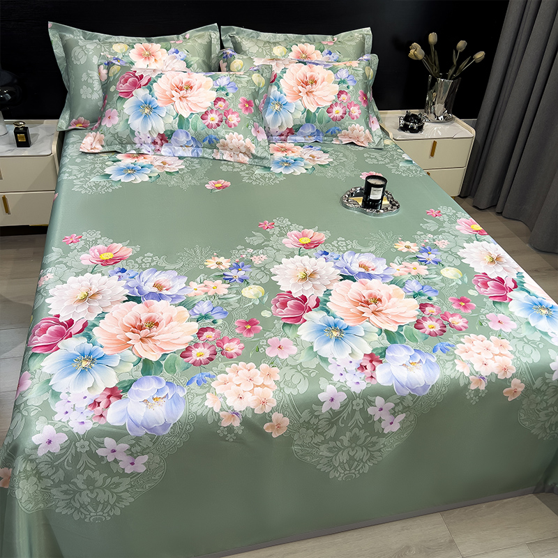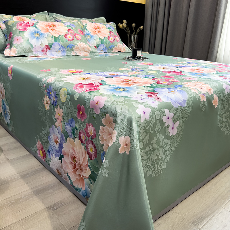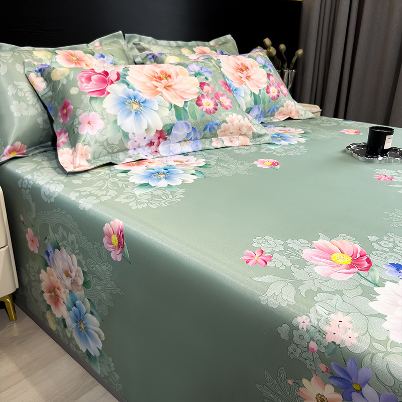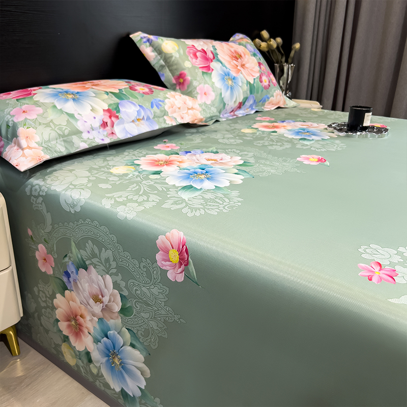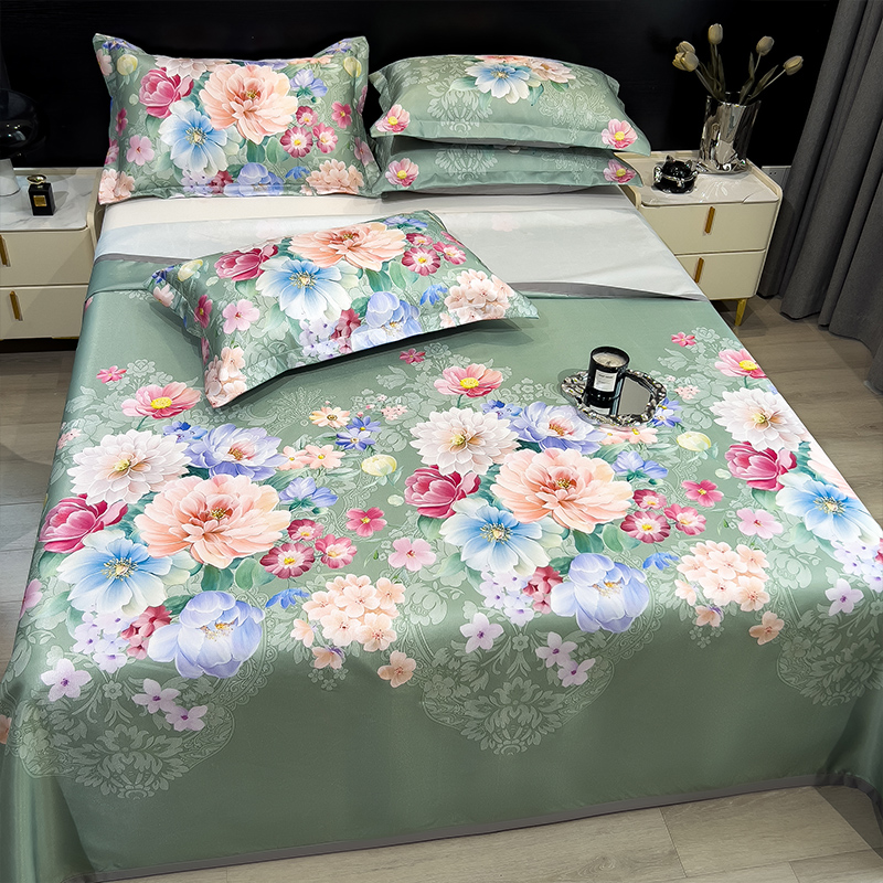 柏薇 2025新款冰丝床单款凉席三件套系列 繁花