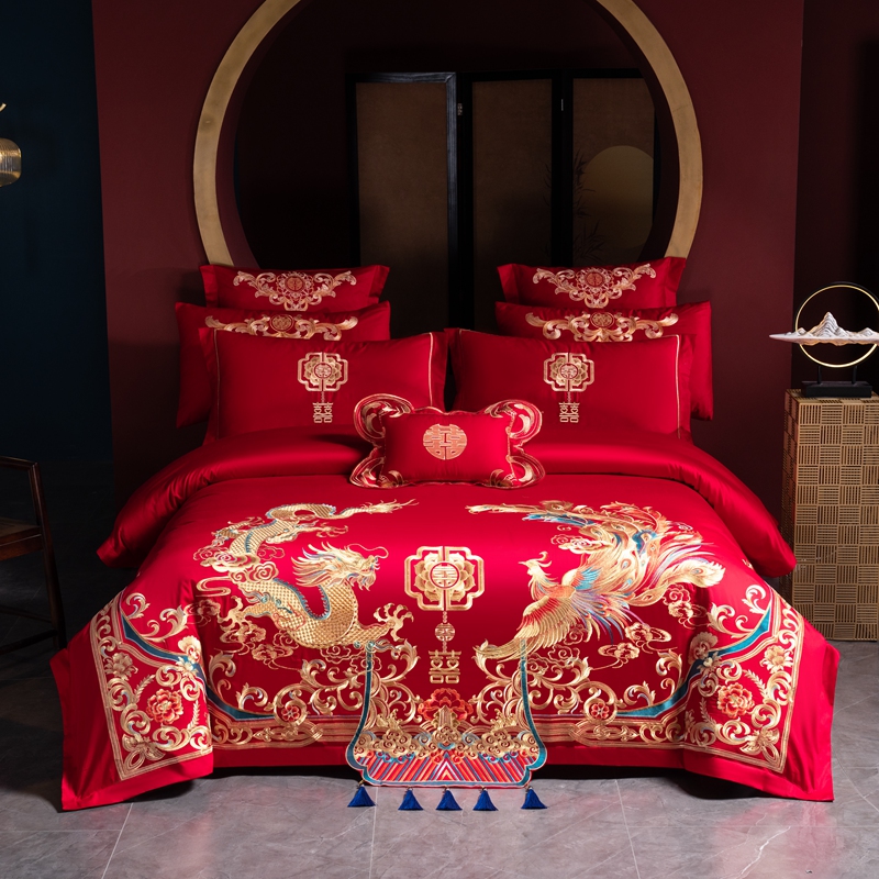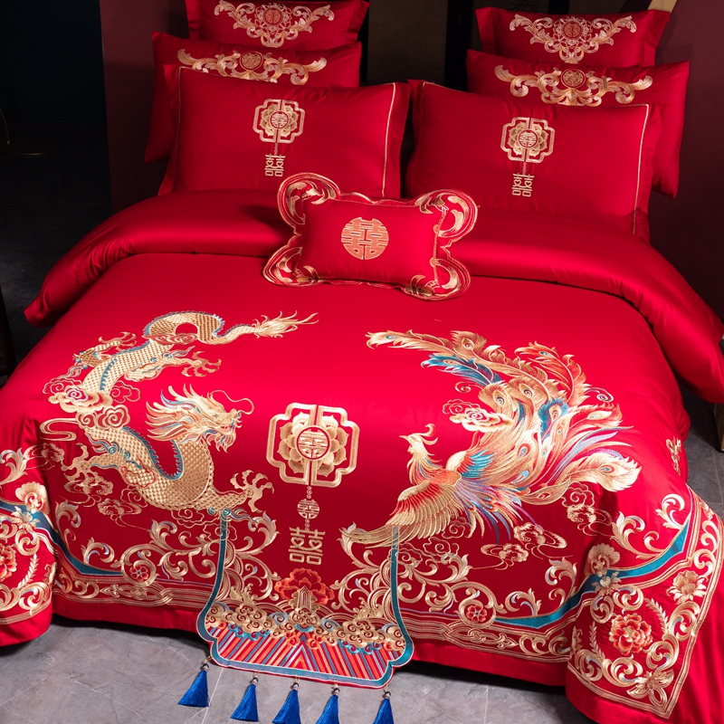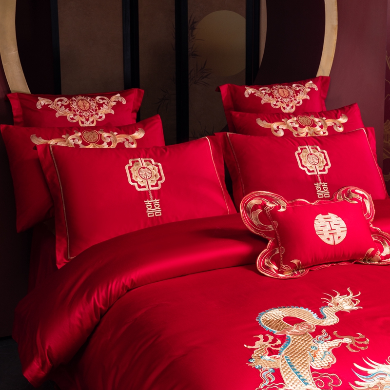 当前位置: 91家纺网 > 商品网购 > 床品套件 > 四件套 > 婚庆四件套 > 慕她家纺 慕她婚庆四件套大红色磨毛亲肤棉刺绣结婚工艺款床上用品 挚恋龙凤
