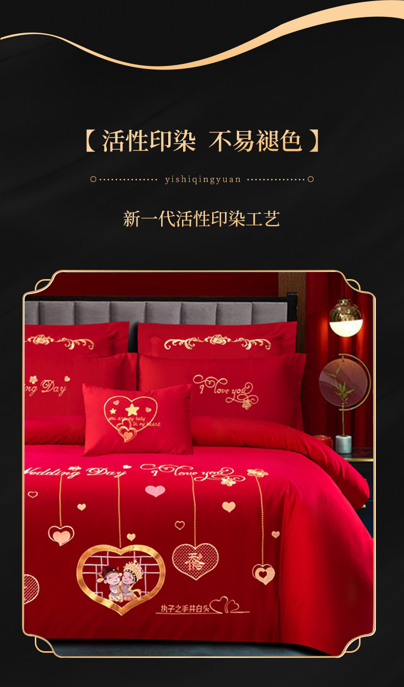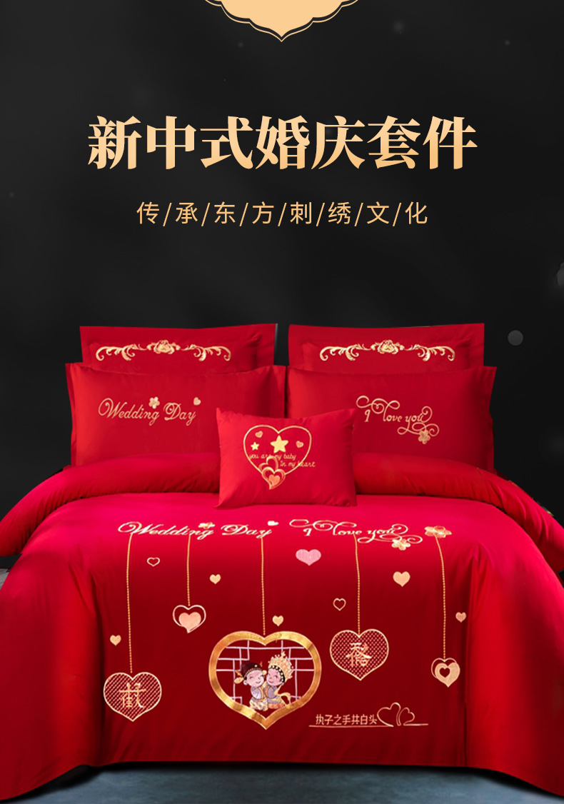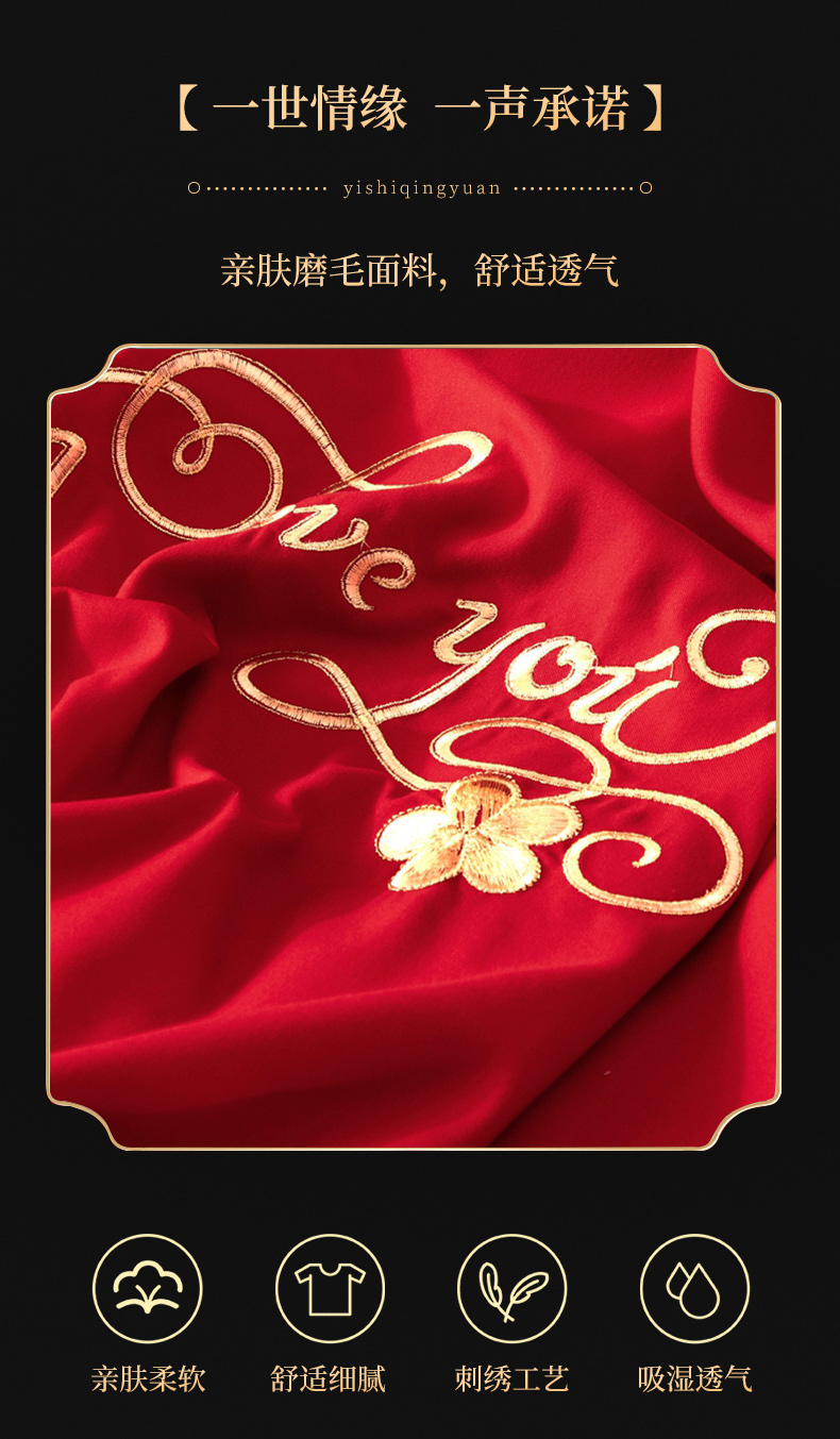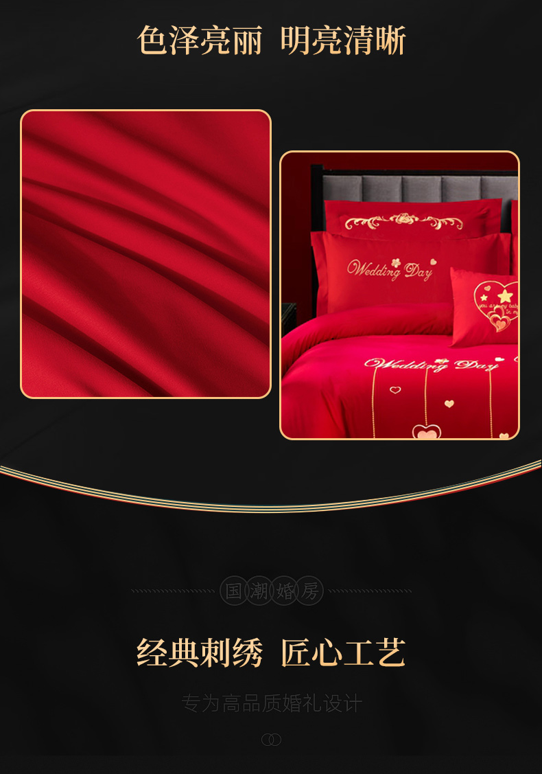 当前位置: 91家纺网 > 商品网购 > 床品套件 > 四件套 > 婚庆四件套 > 慕她家纺 慕她婚庆四件套大红色磨毛亲肤棉刺绣结婚工艺款床上用品 天作之合