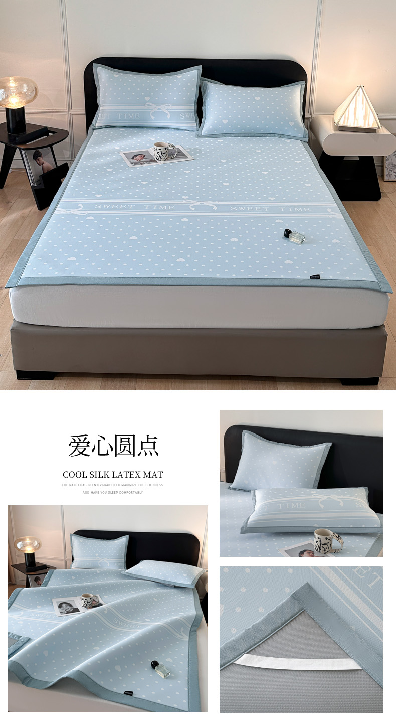慕尚家纺 2025春夏新款凉感冰丝提花凉席三件套 爱心圆点