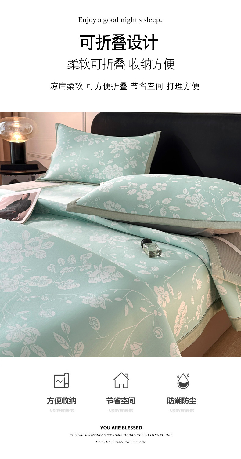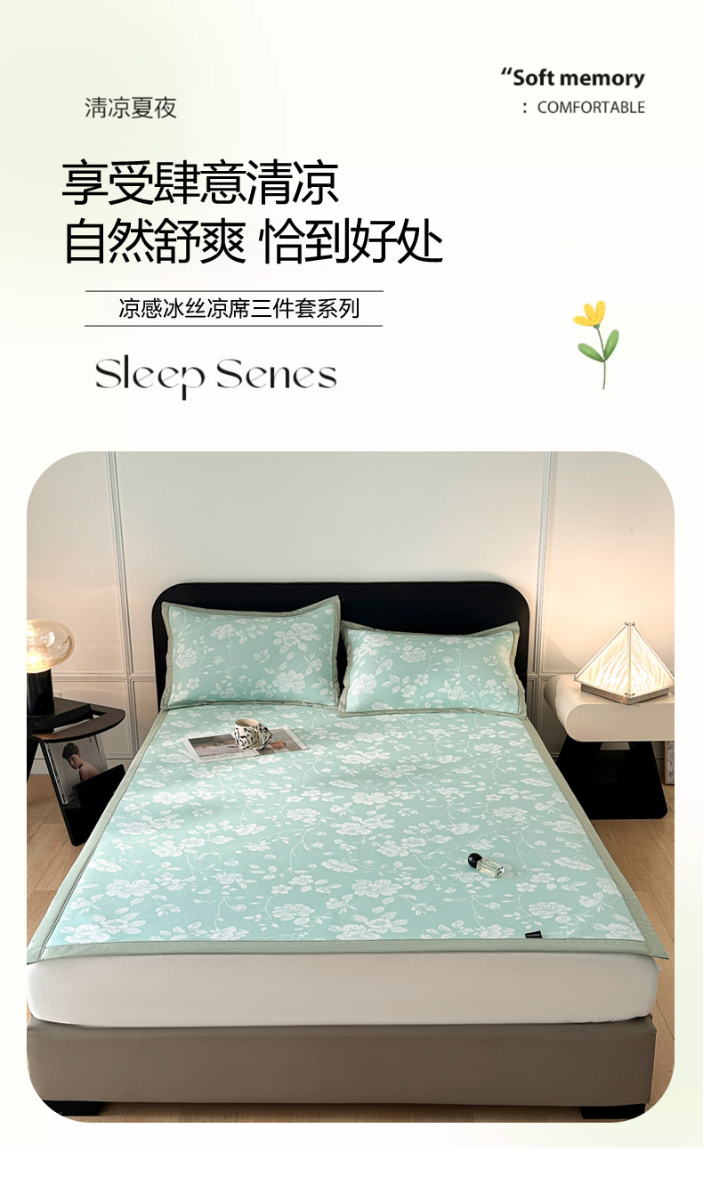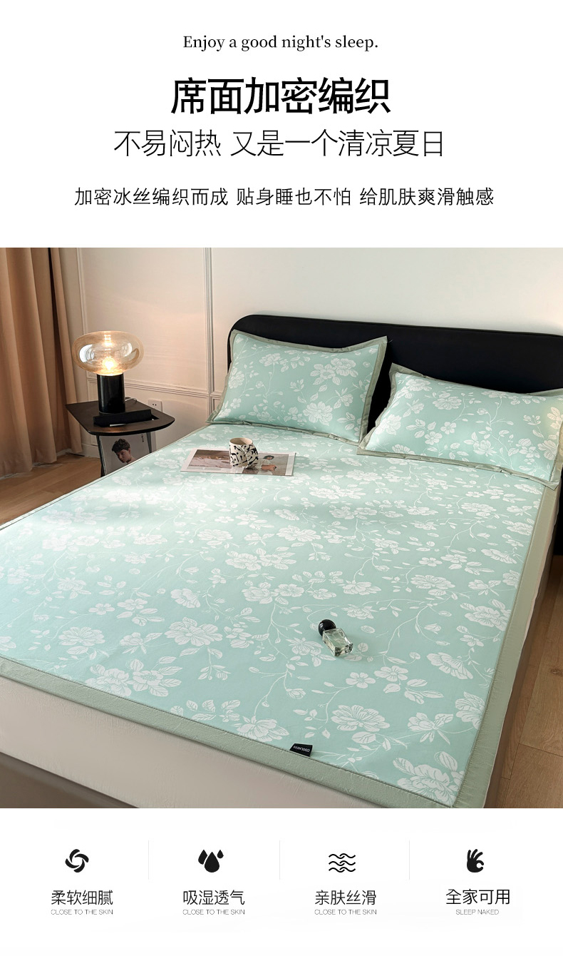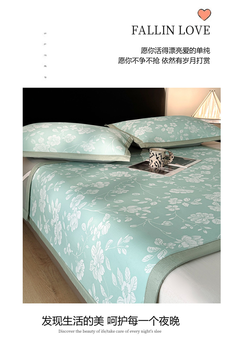慕尚家纺 2025春夏新款凉感冰丝提花凉席三件套 花语 绿