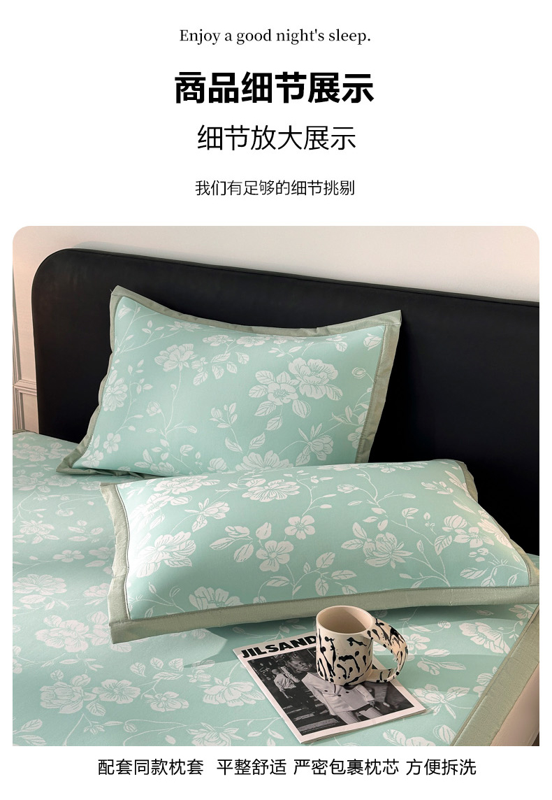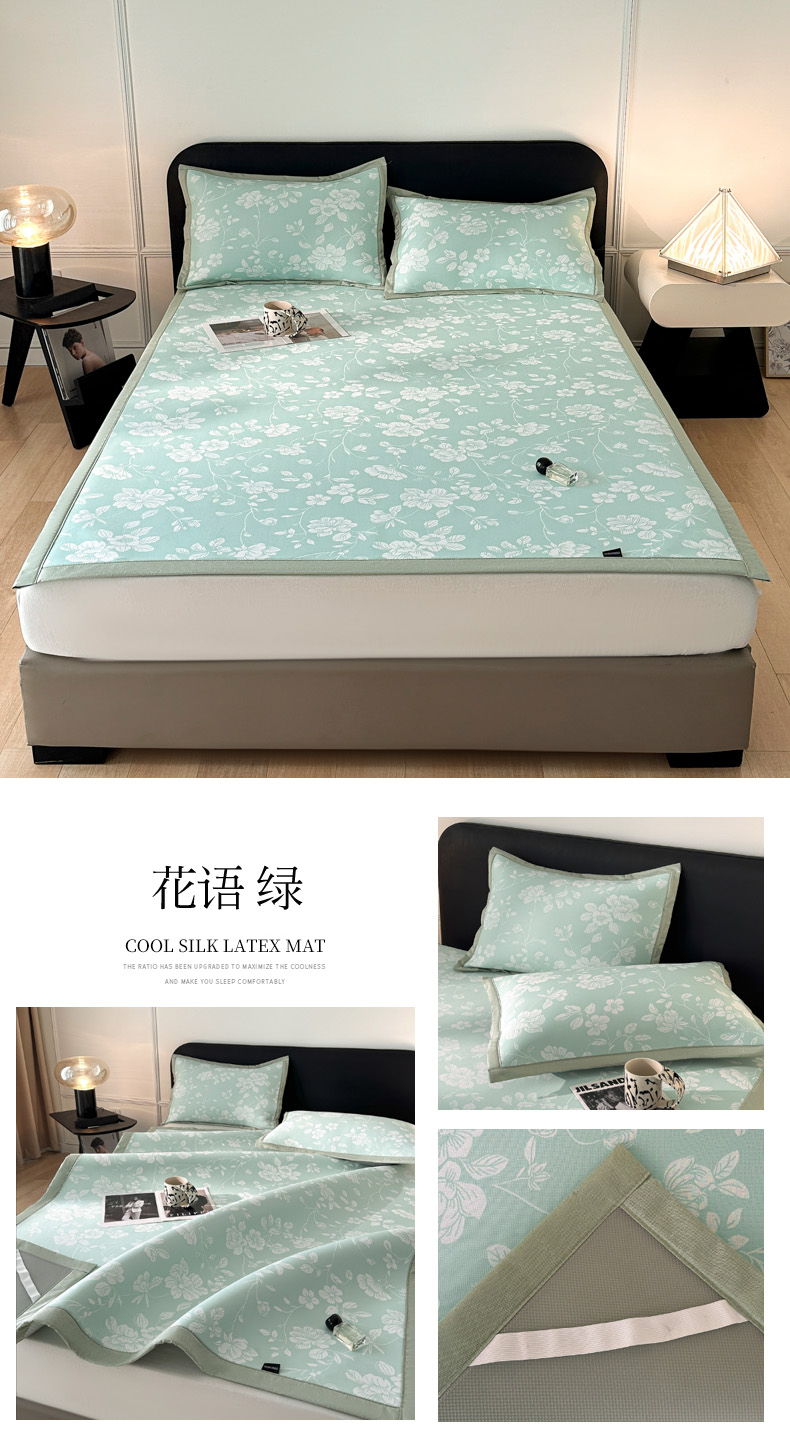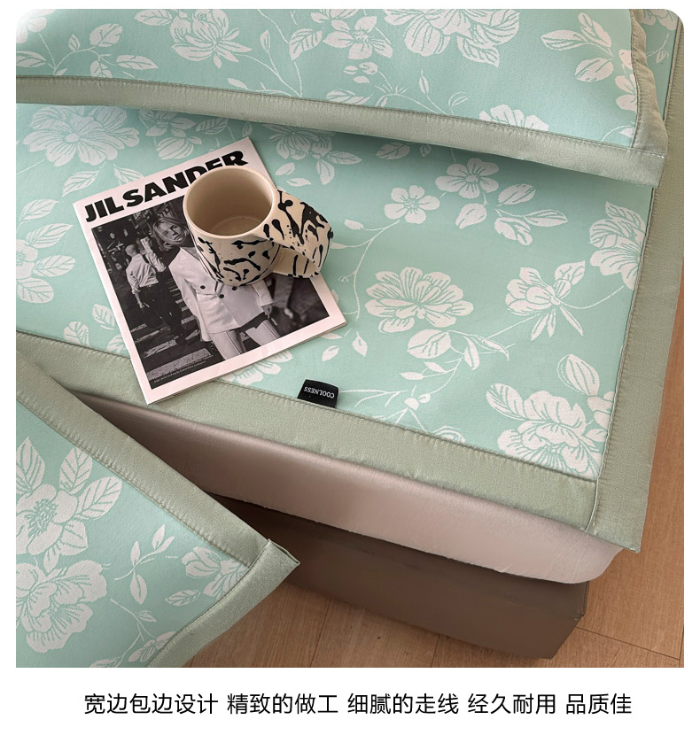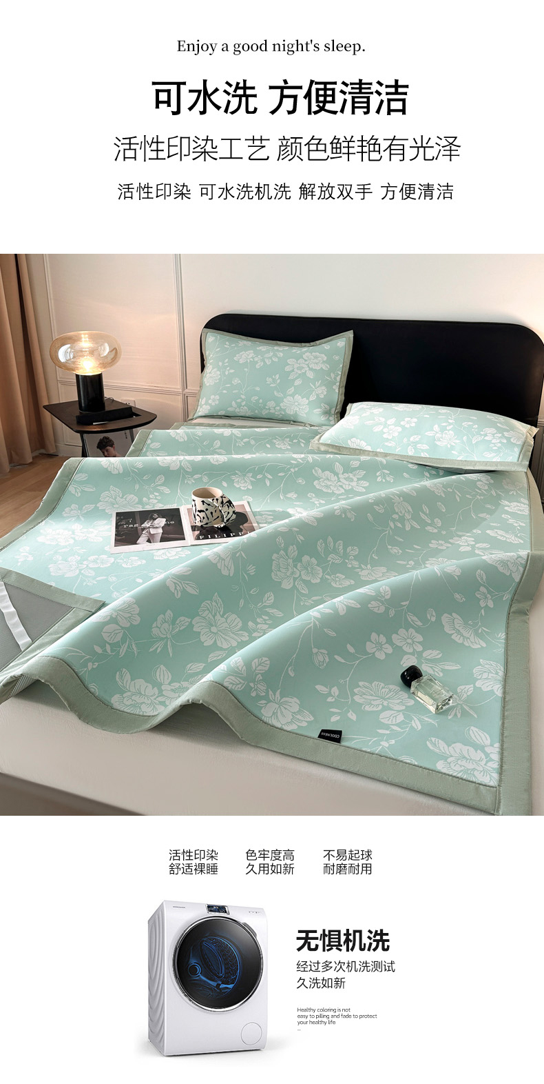 慕尚家纺 2025春夏新款凉感冰丝提花凉席三件套 花语 绿