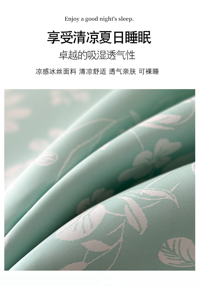 商品名称:慕尚家纺 2025春夏新款凉感冰丝提花凉席三件套 花语 绿