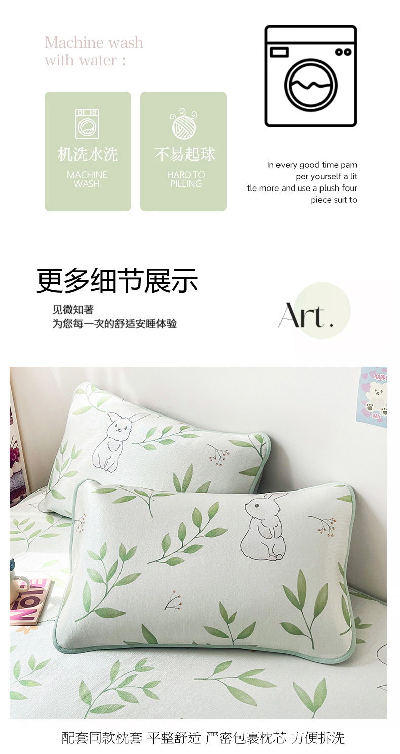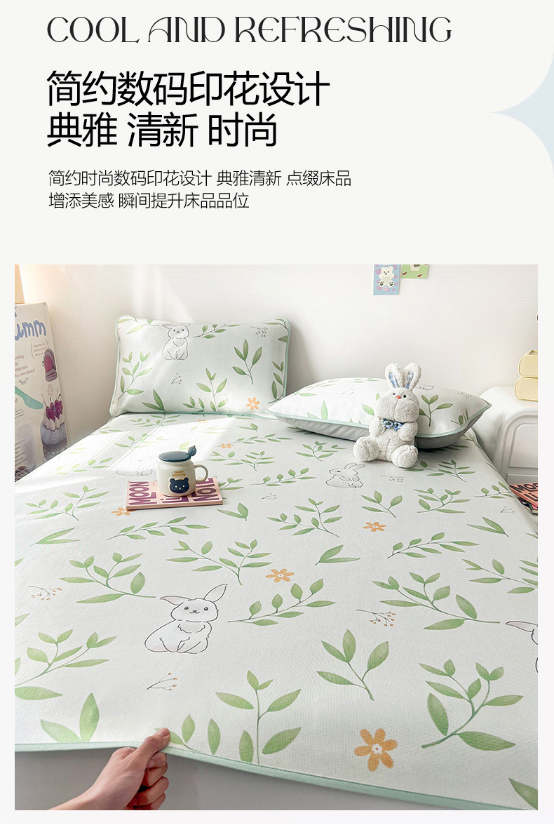 商品名称:倾慕家纺 2025新款时尚风凉感冰丝席 竹叶小兔