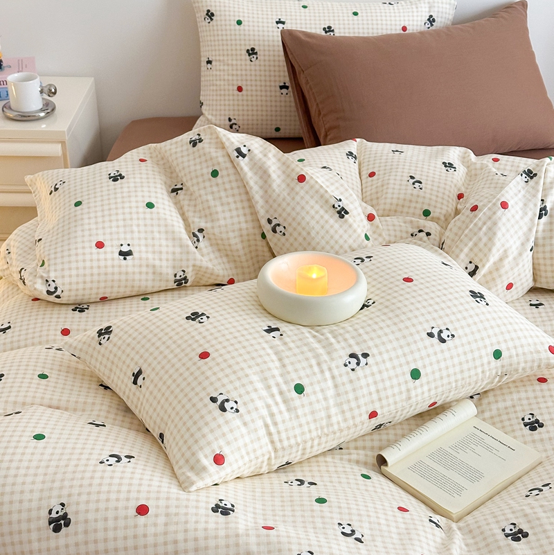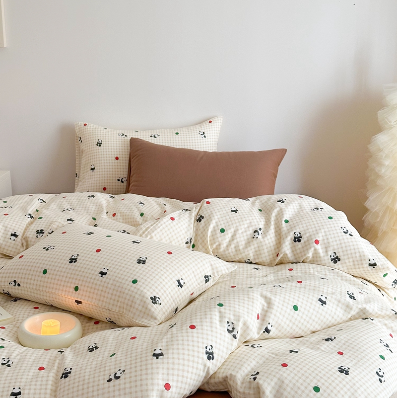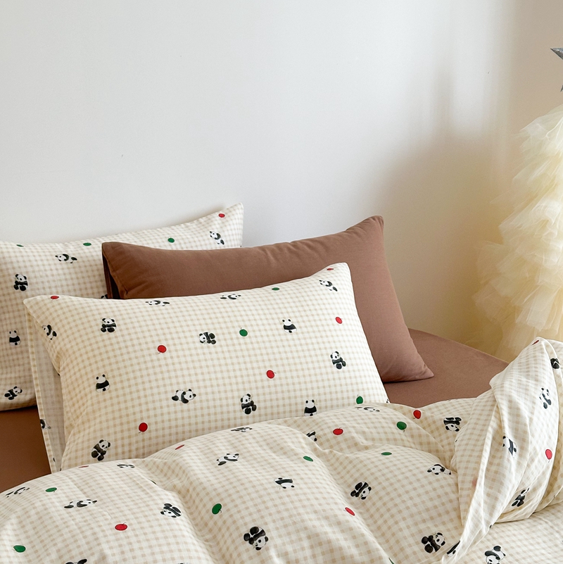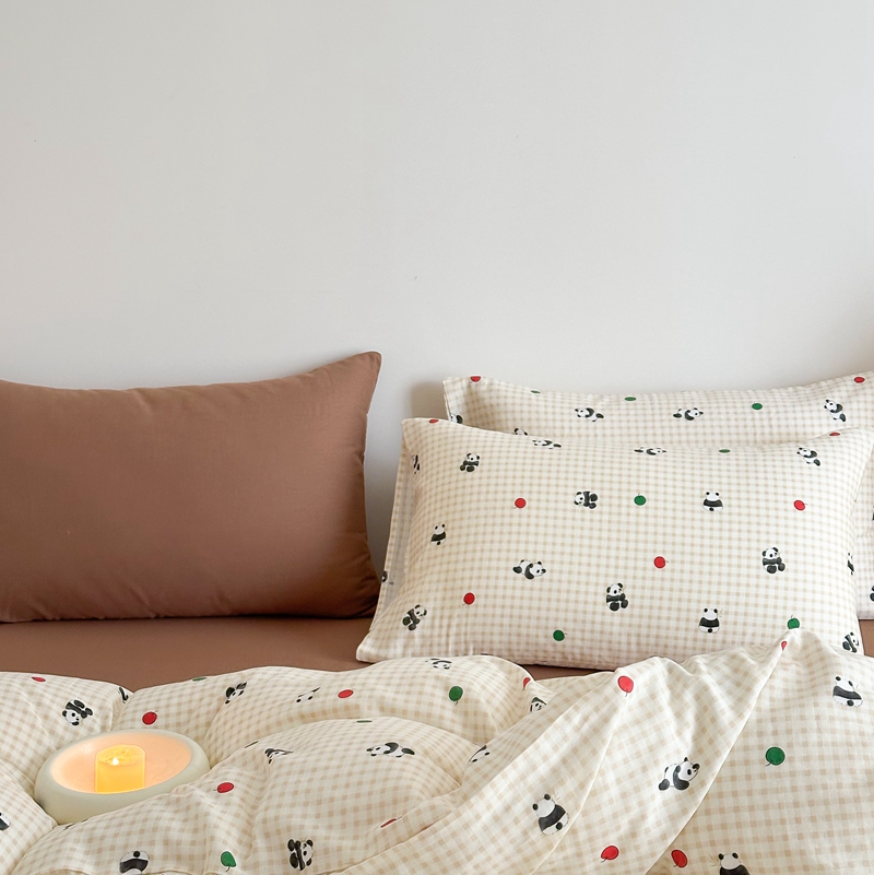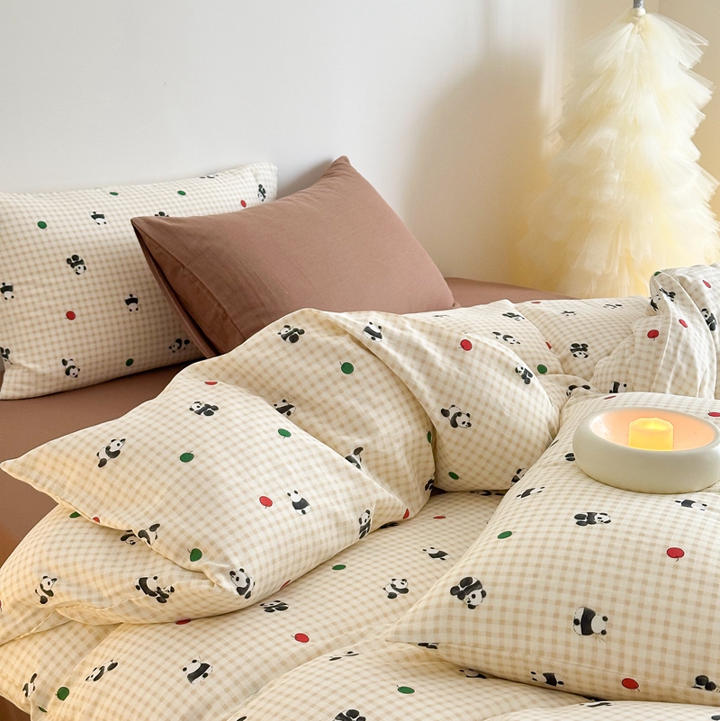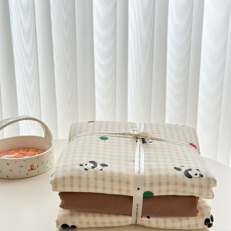 桃喜 2025新款春夏双层纱卡通系列四件套 格子熊猫