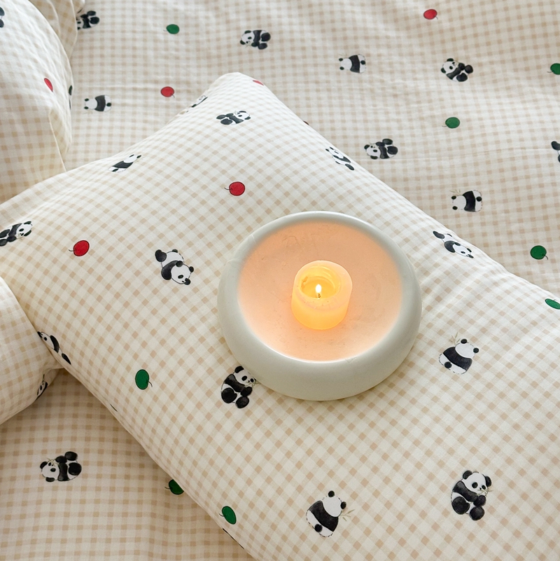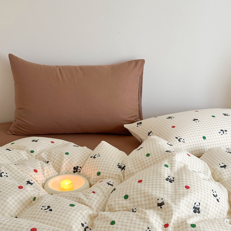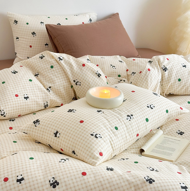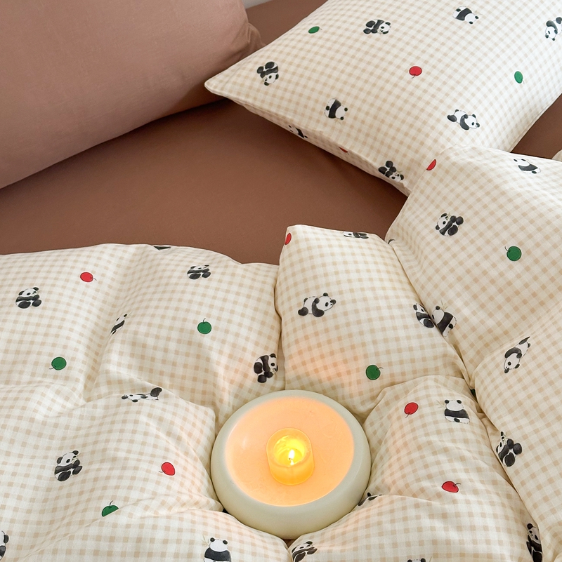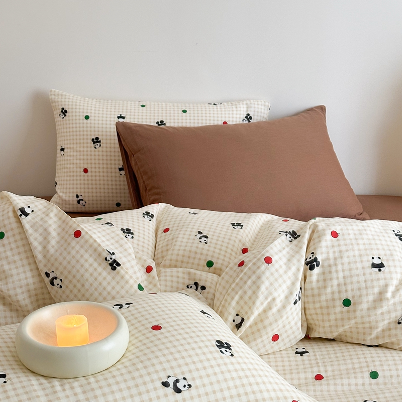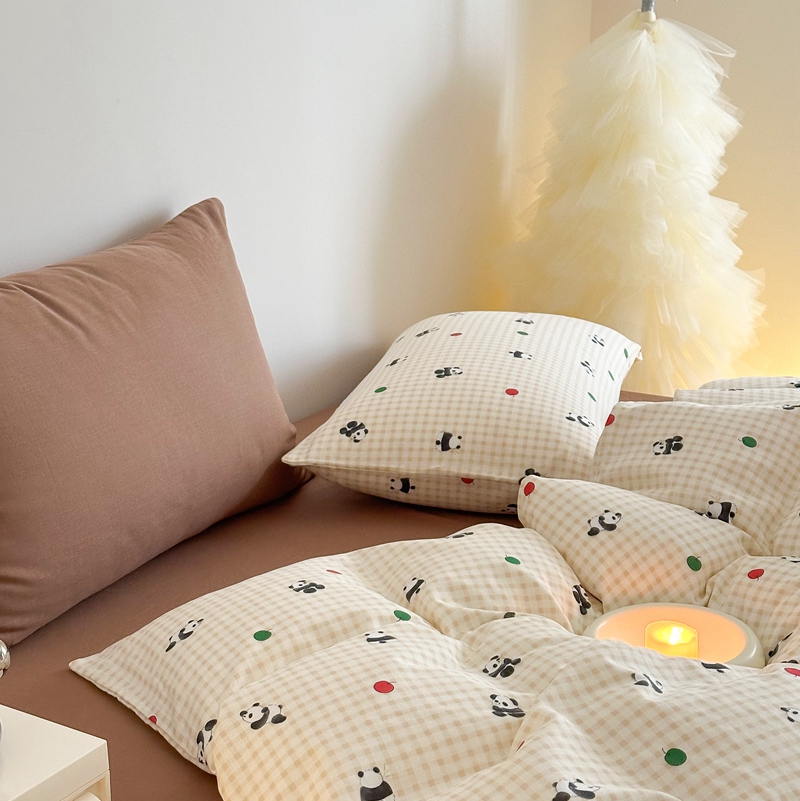 桃喜 2025新款春夏双层纱卡通系列四件套 格子熊猫