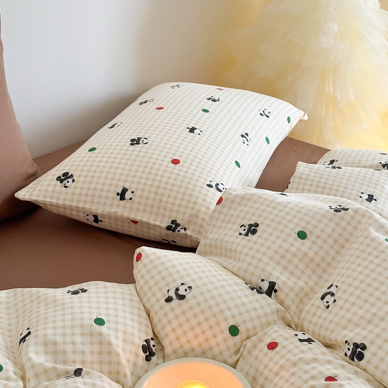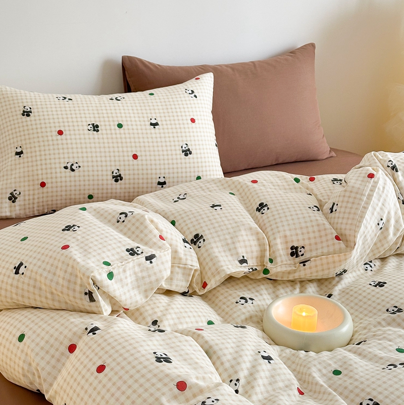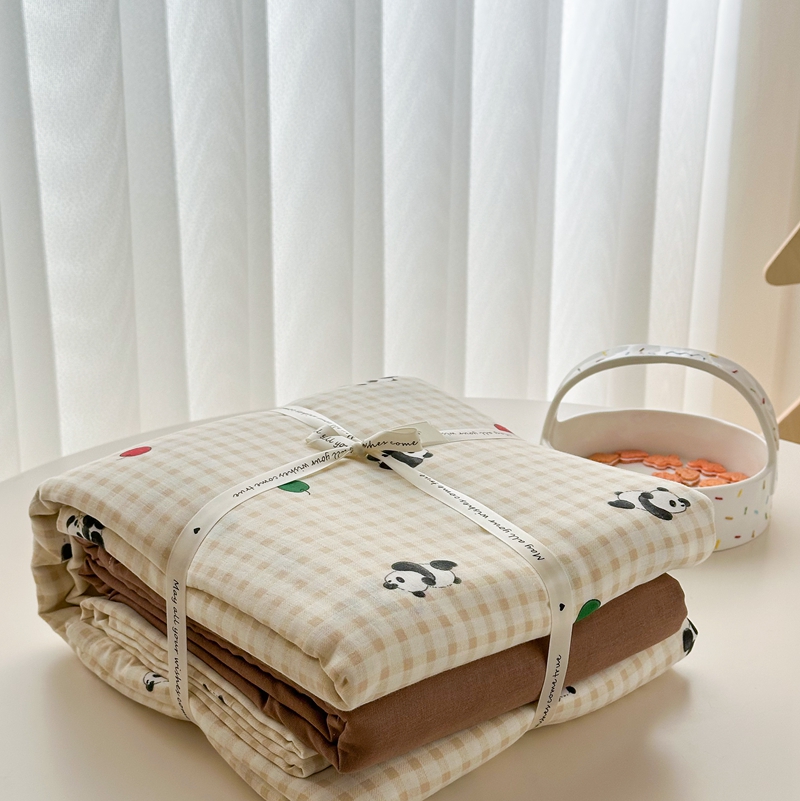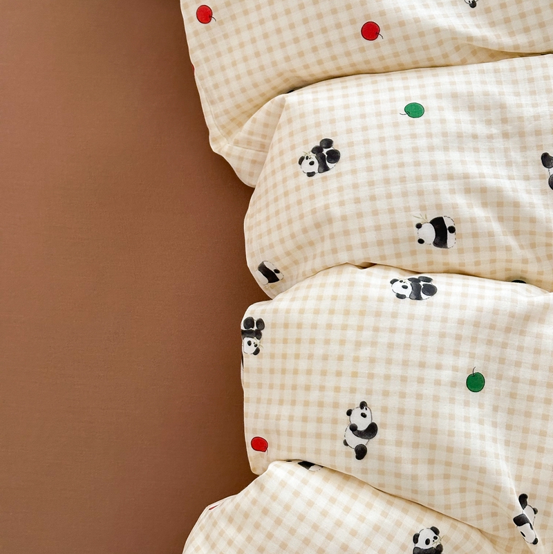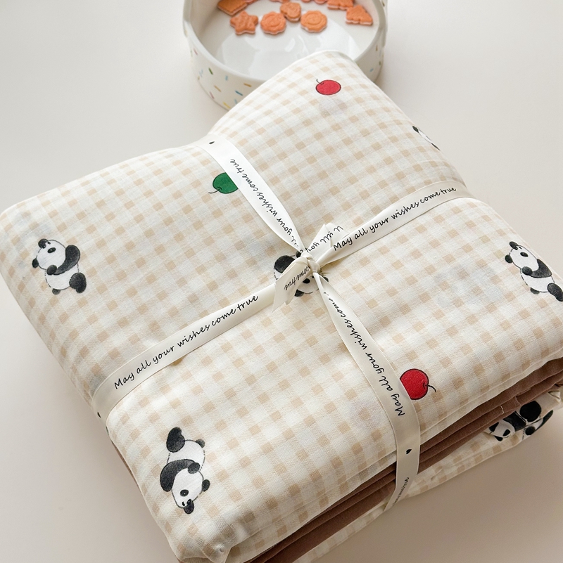 商品名称:桃喜 2025新款春夏双层纱卡通系列四件套 格子熊猫