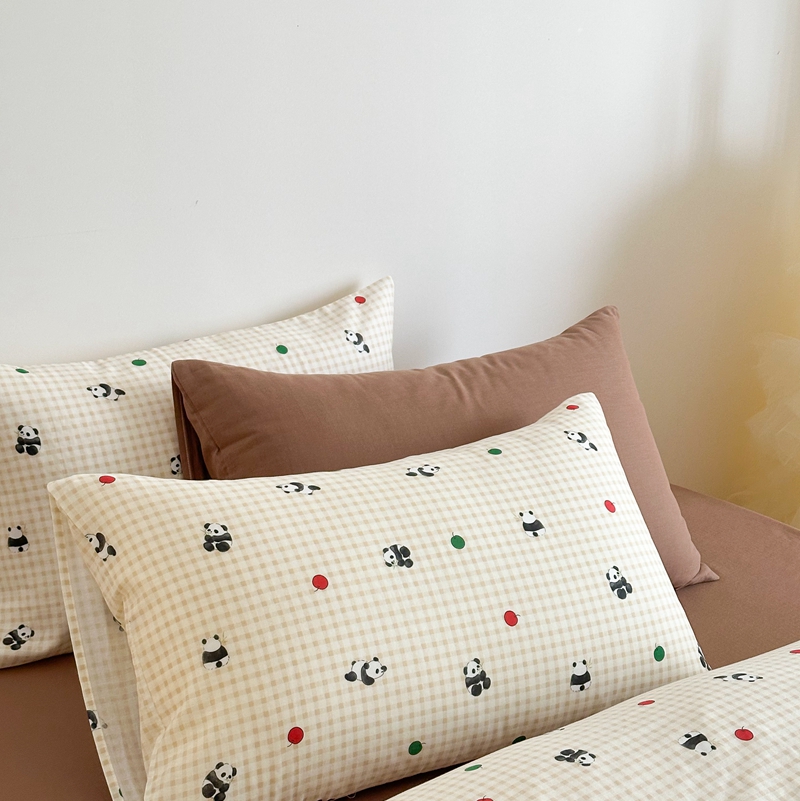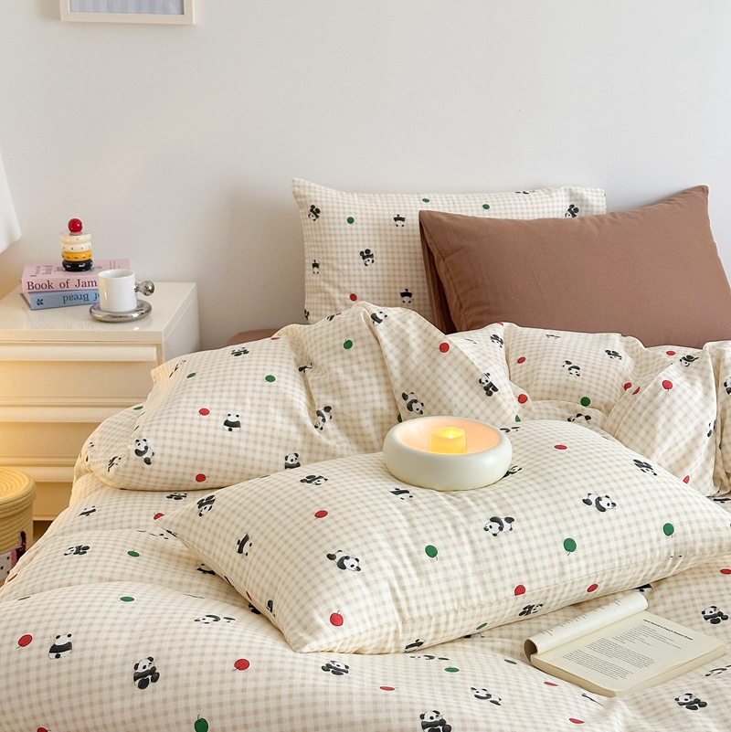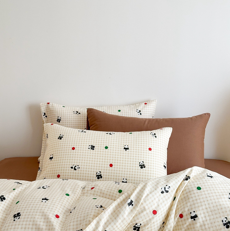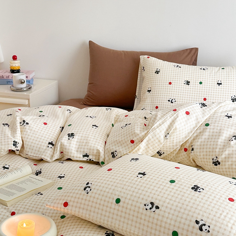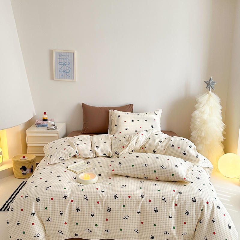 商品名称:桃喜 2025新款春夏双层纱卡通系列四件套 格子熊猫