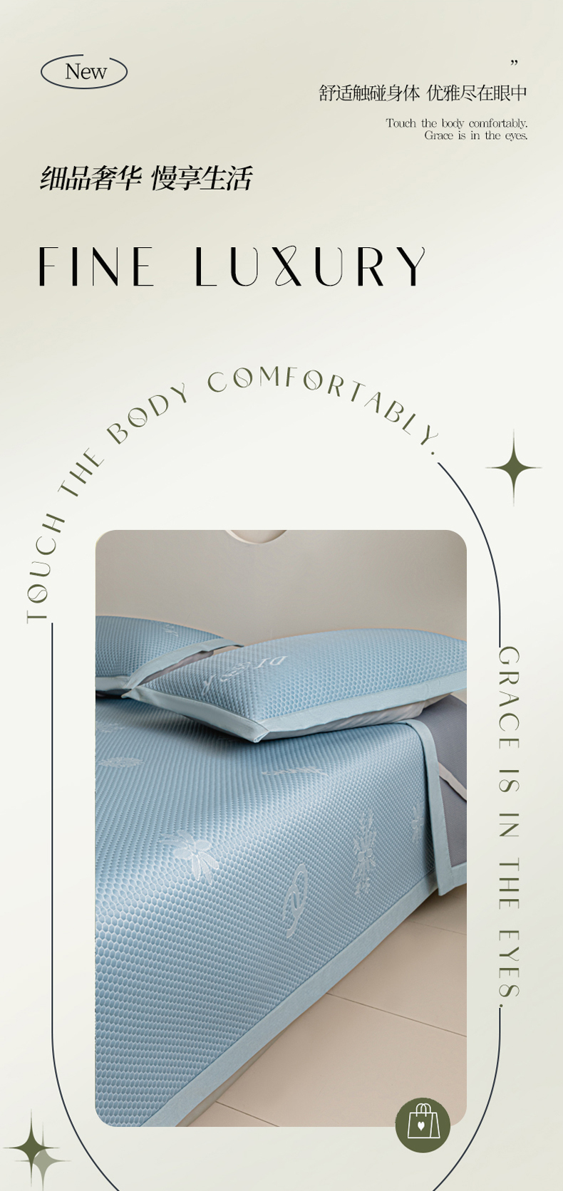 (总)阿亮家居 2025新款A类母婴级1800D碳光小鹿冰丝席凉席,宾利蓝,冰川灰,繁星绿,山茶粉,香槟金